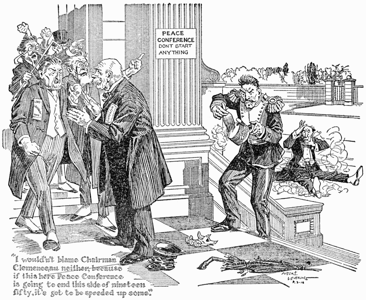 "I don't care if it went off every Fourth of July," Morris said, "because if I went over there it would be just my luck that the peace nogotiations falls through and the Germans invent a gun leaving Frankfort ever hour on the hour and arriving in Paris daily, including Sundays, without leaving enough trace of me to file a proof of death with. Am I right or wrong?"