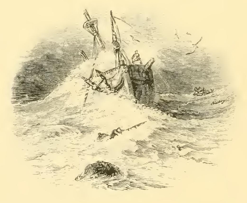 We one day descried some shapeless object drifting at a distance. At sea, every thing that breaks the monotony of the surrounding expanse attracts attention. It proved to be the mast of a ship that must have been completely wrecked; for there were the remains of handkerchiefs, by which some of the crew had fastened themselves to this spar, to prevent their being washed off by the waves. There was no trace by which the name of the ship could be ascertained. The wreck had evidently drifted about for many months; clusters of shell-fish had fastened about it, and long sea-weeds flaunted at its sides. But where, thought I, is the crew? Their struggle has long been over—they have gone down amidst the roar of the tempest—their bones lie whitening among the caverns of the deep. Silence, oblivion, like the waves, have closed over them, and no one can tell the story of their end. What sighs have been wafted after that ship! what prayers offered up at the deserted fireside of home! How often has the mistress, the wife, the mother, pored over the daily news, to catch some casual intelligence of this rover of the deep! How has expectation darkened into anxiety—anxiety into dread—and dread into despair! Alas! not one memento may ever return for love to cherish. All that may ever be known, is that she sailed from her port, “and was never heard of more!”