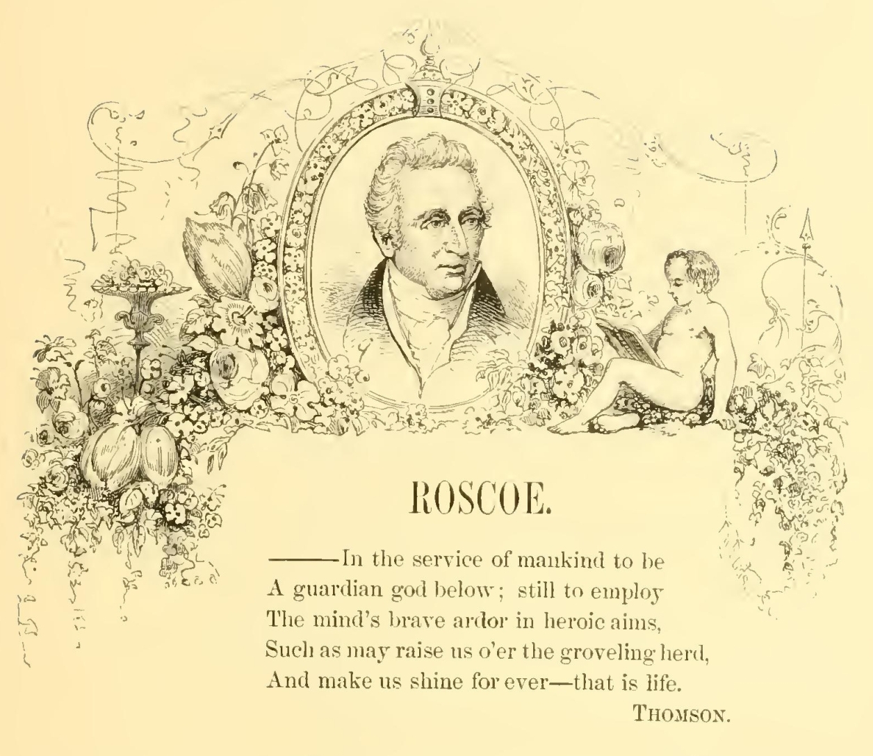 Such has been the case with Mr. Roscoe. Born in a place apparently ungenial to the growth of literary talent—in the very market-place of trade; without fortune, family connections, or patronage; self-prompted, self-sustained, and almost self-taught, he has conquered every obstacle, achieved his way to eminence, and, having become one of the ornaments of the nation, has turned the whole force of his talents and influence to advance and embellish his native town.