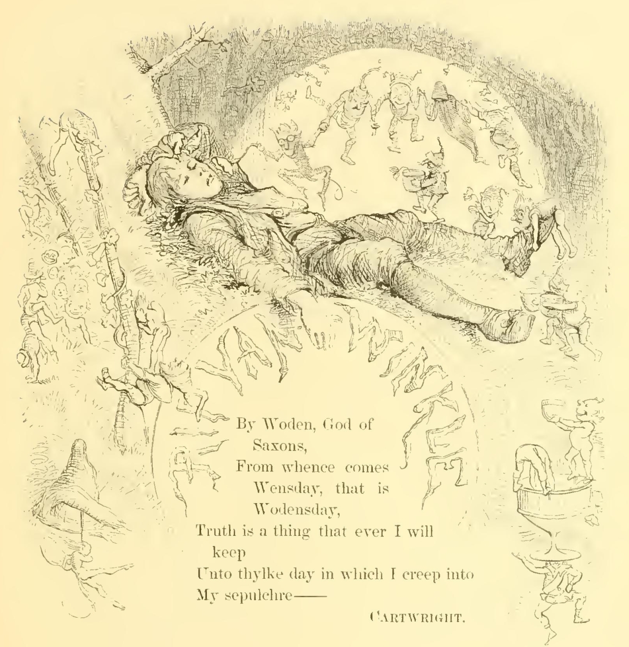From the listless repose of the place and the peculiar character of its inhabitants, who are descendants from the original Dutch settlers, this sequestered glen has long been known by the name of SLEEPY HOLLOW, and its rustic lads are called the Sleepy Hollow Boys throughout all the neighboring country. A drowsy, dreamy influence seems to hang over the land and to pervade the very atmosphere. Some say that the place was bewitched by a High German doctor during the early days of the settlement; others, that an old Indian chief, the prophet or wizard of his tribe, held his powwows there before the country was discovered by Master Hendrick Hudson. Certain it is, the place still continues under the sway of some witching power that holds a spell over the minds of the good people, causing them to walk in a continual reverie. They are given to all kinds of marvellous beliefs, are subject to trances and visions, and frequently see strange sights and hear music and voices in the air. The whole neighborhood abounds with local tales, haunted spots, and twilight superstitions; stars shoot and meteors glare oftener across the valley than in any other part of the country, and the nightmare, with her whole ninefold, seems to make it the favorite scene of her gambols.