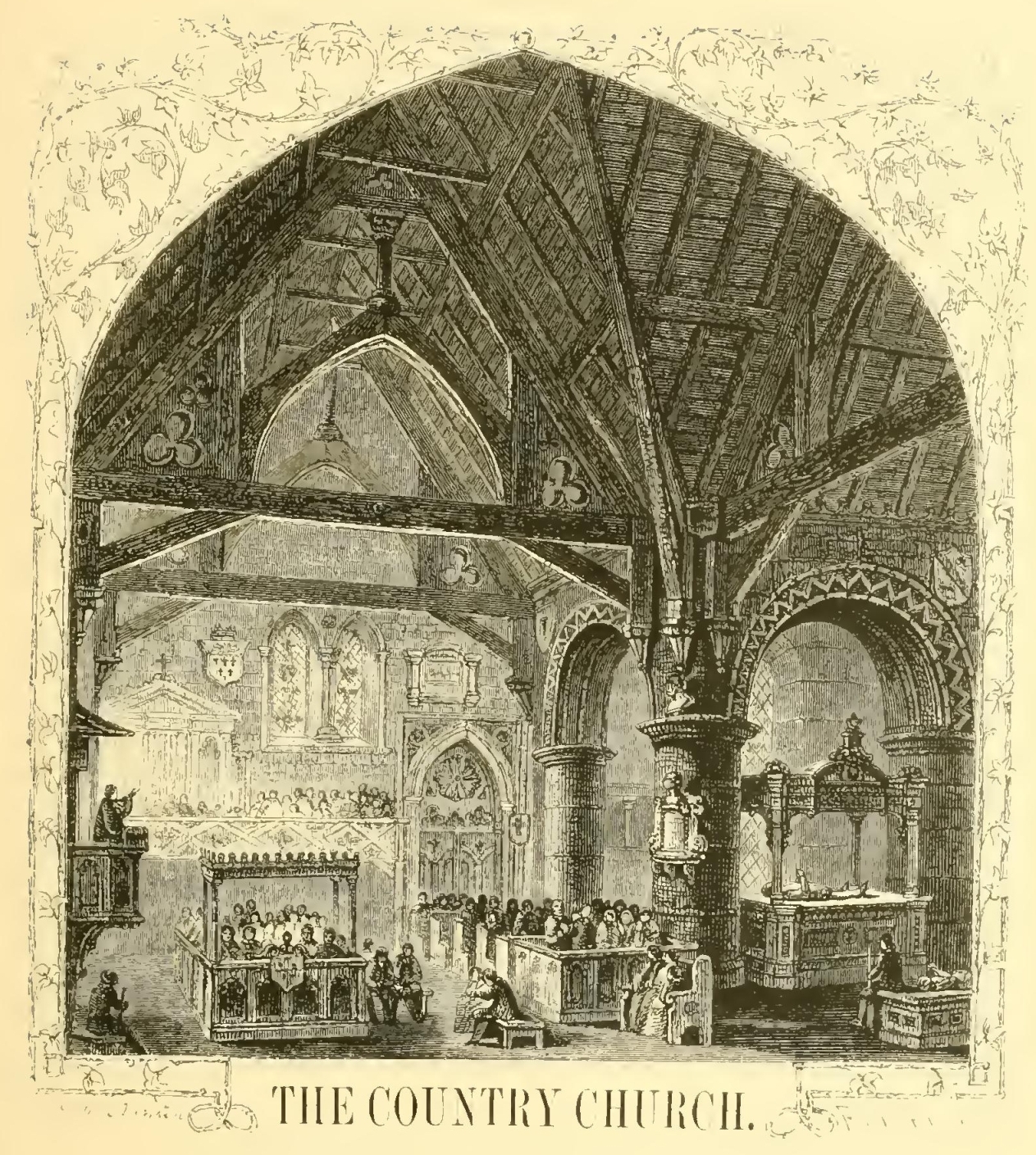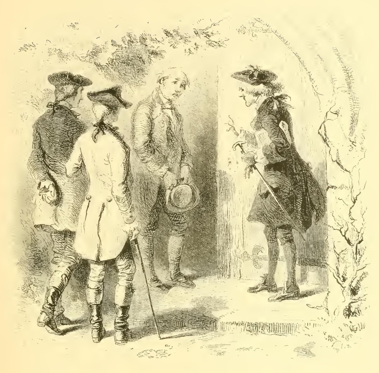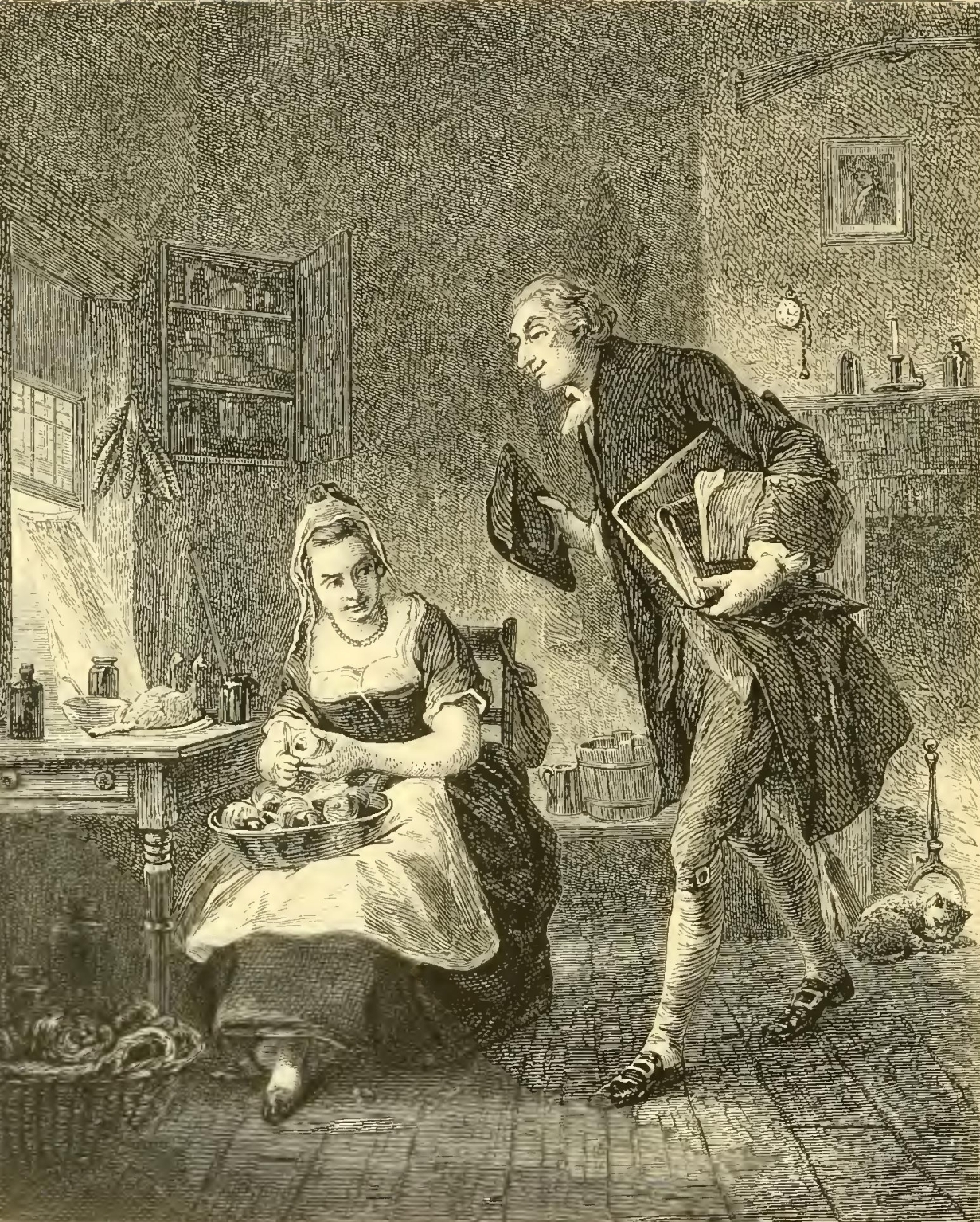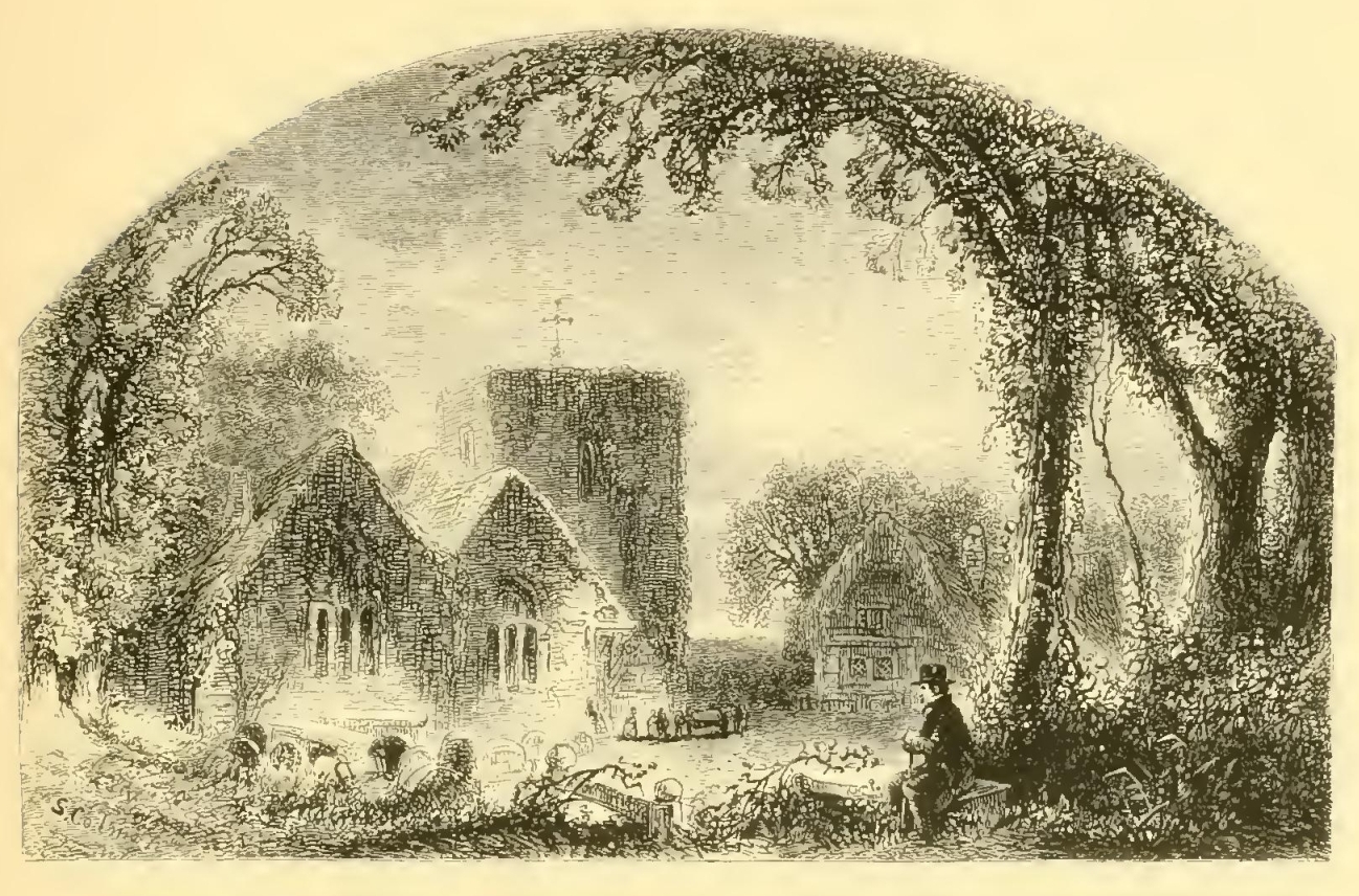 The schoolmaster is generally a man of some importance in the female circle of a rural neighborhood, being considered a kind of idle, gentleman-like personage of vastly superior taste and accomplishments to the rough country swains, and, indeed, inferior in learning only to the parson. His appearance, therefore, is apt to occasion some little stir at the tea-table of a farmhouse and the addition of a supernumerary dish of cakes or sweetmeats, or, peradventure, the parade of a silver tea-pot. Our man of letters, therefore, was peculiarly happy in the smiles of all the country damsels. How he would figure among them in the churchyard between services on Sundays, gathering grapes for them from the wild vines that overrun the surrounding trees; reciting for their amusement all the epitaphs on the tombstones; or sauntering, with a whole bevy of them, along the banks of the adjacent mill-pond, while the more bashful country bumpkins hung sheepishly back, envying his superior elegance and address.