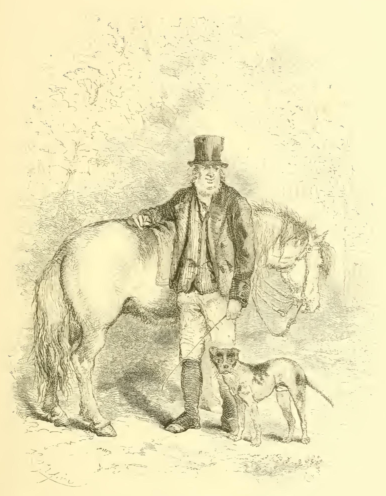 The gallant Ichabod now spent at least an extra half hour at his toilet, brushing and furbishing up his best, and indeed only, suit of rusty black, and arranging his locks by a bit of broken looking-glass that hung up in the school-house. That he might make his appearance before his mistress in the true style of a cavalier, he borrowed a horse from the farmer with whom he was domiciliated, a choleric old Dutchman of the name of Hans Van Ripper, and, thus gallantly mounted, issued forth like a knight-errant in quest of adventures. But it is meet I should, in the true spirit of romantic story, give some account of the looks and equipments of my hero and his steed. The animal he bestrode was a broken-down plough-horse that had outlived almost everything but his viciousness. He was gaunt and shagged, with a ewe neck and a head like a hammer; his rusty mane and tail were tangled and knotted with burrs; one eye had lost its pupil and was glaring and spectral, but the other had the gleam of a genuine devil in it. Still, he must have had fire and mettle in his day, if we may judge from the name he bore of Gunpowder. He had, in fact, been a favorite steed of his master’s, the choleric Van Ripper, who was a furious rider, and had infused, very probably, some of his own spirit into the animal; for, old and broken down as he looked, there was more of the lurking devil in him than in any young filly in the country.
