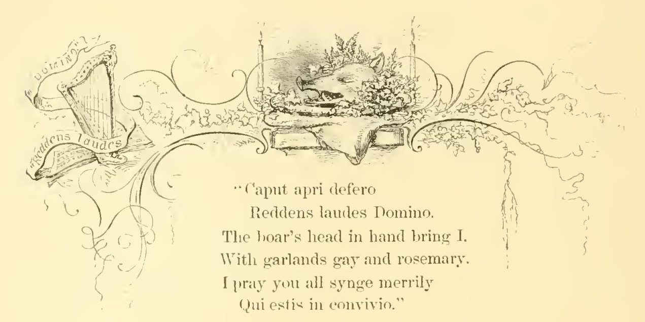 The pedagogue’s mouth watered as he looked upon this sumptuous promise of luxurious winter fare. In his devouring mind’s eye he pictured to himself every roasting-pig running about with a pudding in his belly and an apple in his mouth; the pigeons were snugly put to bed in a comfortable pie and tucked in with a coverlet of crust; the geese were swimming in their own gravy; and the ducks pairing cosily in dishes, like snug married couples, with a decent competency of onion sauce. In the porkers he saw carved out the future sleek side of bacon and juicy relishing ham; not a turkey but he beheld daintily trussed up, with its gizzard under its wing, and, peradventure, a necklace of savory sausages; and even bright Chanticleer himself lay sprawling on his back in a side-dish, with uplifted claws, as if craving that quarter which his chivalrous spirit disdained to ask while living.