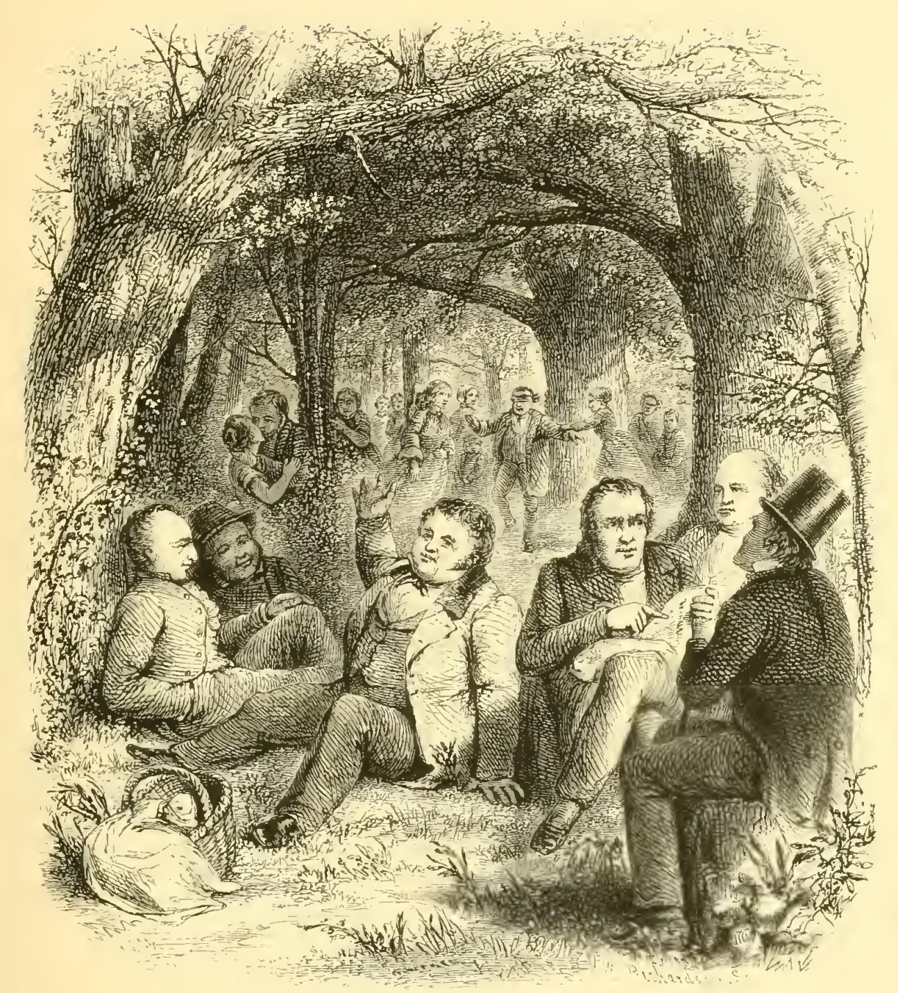 THE preceding tale is given almost in the precise words in which I heard it related at a Corporation meeting of the ancient city of Manhattoes, at which were present many of its sagest and most illustrious burghers. The narrator was a pleasant, shabby, gentlemanly old fellow in pepper-and-salt clothes, with a sadly humorous face, and one whom I strongly suspected of being poor, he made such efforts to be entertaining. When his story was concluded there was much laughter and approbation, particularly from two or three deputy aldermen who had been asleep the greater part of the time. There was, however, one tall, dry-looking old gentleman, with beetling eyebrows, who maintained a grave and rather severe face throughout, now and then folding his arms, inclining his head, and looking down upon the floor, as if turning a doubt over in his mind. He was one of your wary men, who never laugh but upon good grounds—when they have reason and the law on their side. When the mirth of the rest of the company had subsided and silence was restored, he leaned one arm on the elbow of his chair, and sticking the other akimbo, demanded, with a slight but exceedingly sage motion of the head and contraction of the brow, what was the moral of the story and what it went to prove.