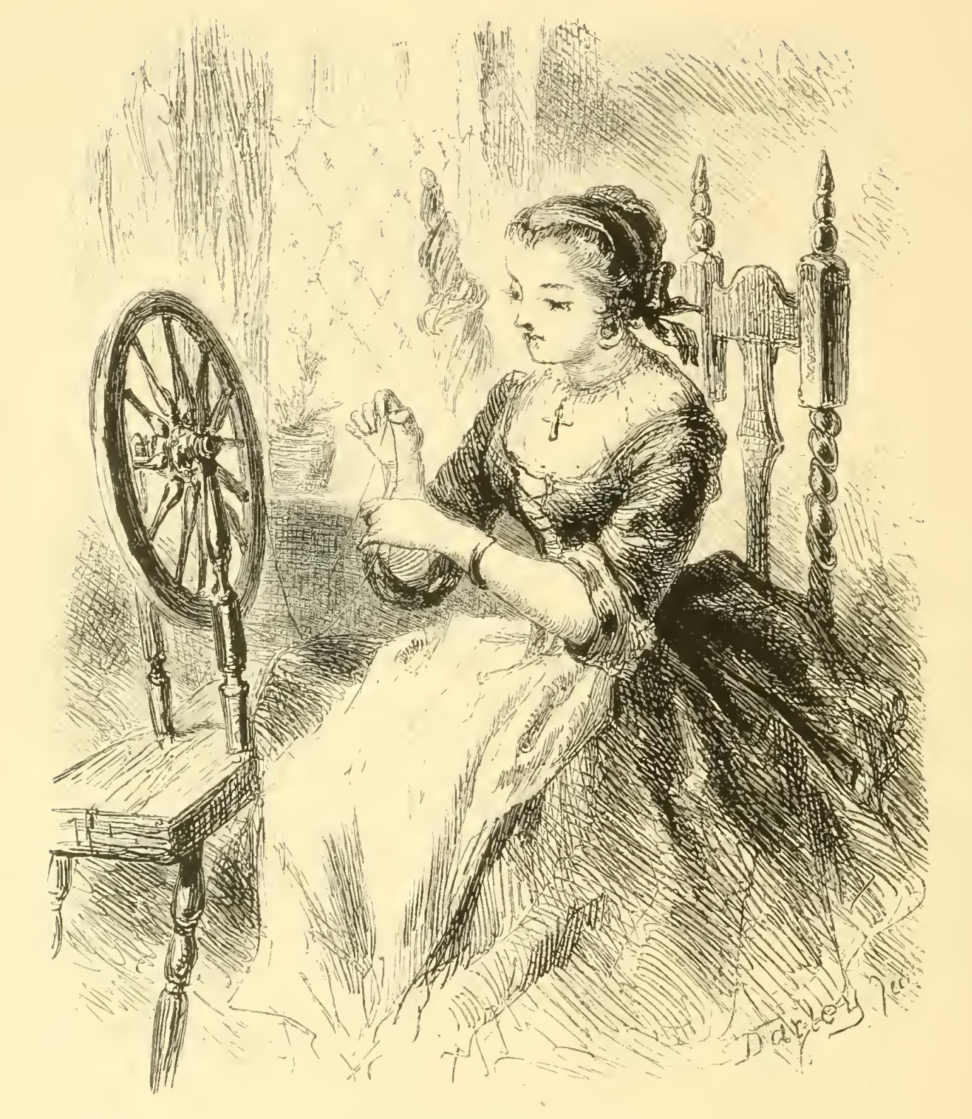 Another of his sources of fearful pleasure was to pass long winter evenings with the old Dutch wives as they sat spinning by the fire, with a row of apples roasting and spluttering along the hearth, and listen to their marvellous tales of ghosts and goblins, and haunted fields, and haunted brooks, and haunted bridges, and haunted houses, and particularly of the headless horseman, or Galloping Hessian of the Hollow, as they sometimes called him. He would delight them equally by his anecdotes of witchcraft and of the direful omens and portentous sights and sounds in the air which prevailed in the earlier times of Connecticut, and would frighten them woefully with speculations upon comets and shooting stars, and with the alarming fact that the world did absolutely turn round and that they were half the time topsy-turvy.