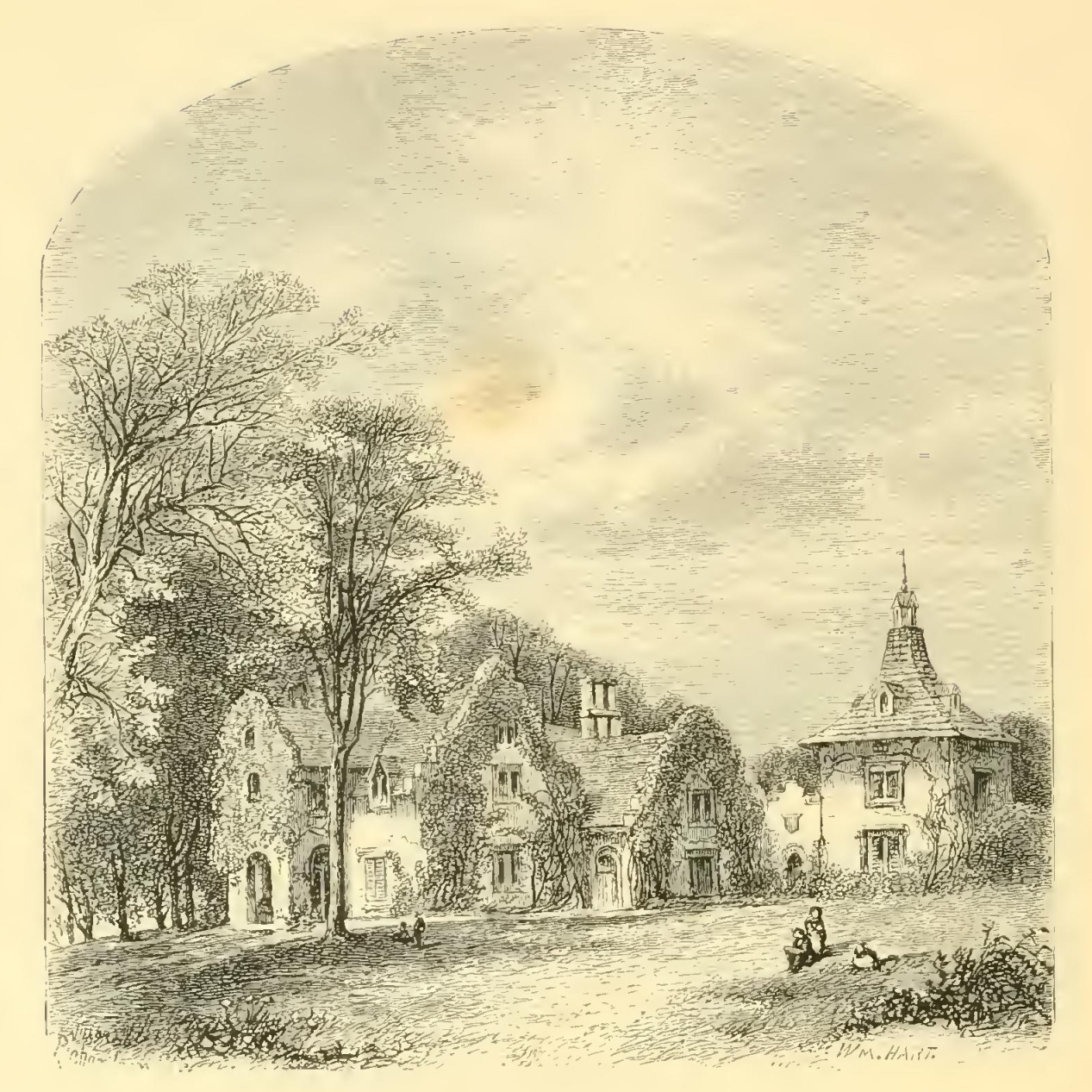 While my feelings were yet alive on the subject, it was my fortune to light on further traces of Mr. Roscoe. I was riding out with a gentleman, to view the environs of Liverpool, when he turned off, through a gate, into some ornamented grounds. After riding a short distance, we came to a spacious mansion of freestone, built in the Grecian style. It was not in the purest style, yet it had an air of elegance, and the situation was delightful. A fine lawn sloped away from it, studded with clumps of trees, so disposed as to break a soft fertile country into a variety of landscapes. The Mersey was seen winding a broad quiet sheet of water through an expanse of green meadow land, while the Welsh mountains, blended with clouds, and melting into distance, bordered the horizon.