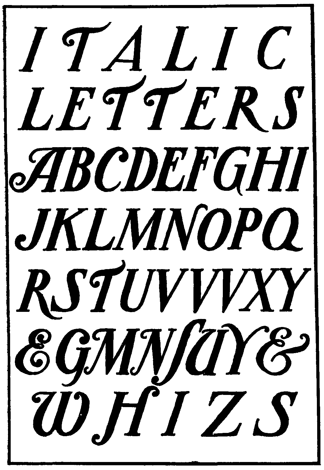 54 Spanish Italic Pen Drawn Letters. By Francisco Lucas. From 'Arte de Escrēvirde.' (Madrid, 1577)