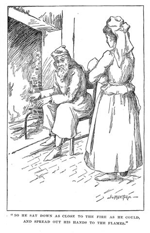 "So he sat down as close to the fire as he could, and spread out his hands to the flames"
