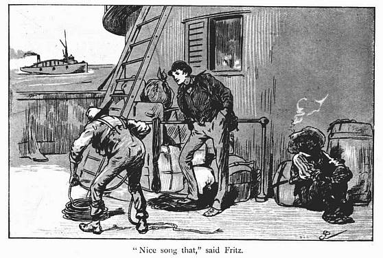 “No, no, little mother; I think not likewise,” chuckled Eric complacently. “I’m not one of your silent ones, not so! But, hurrah!—There comes Fritz turning in under the old gateway. He said he would try and get away for half an hour in the afternoon from the counting-house to wish me another good-bye and see me off, if Herr Grosschnapper could spare him. Ah ha, Master Fritz,” shouted out the sailor lad, as his brother drew nigh, “you’re just in time to see the last of me. I thought the worthy Herr would not let you come, you are so very late.”