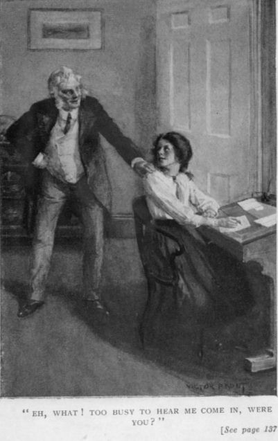The Square gardens looked grey and sodden with the desolation of autumn in a city, and the road facing the window was empty, except for two female figures—a lady, and a girl of sixteen, who were slowly approaching the corner. The lady was dressed in black, the girl was noticeably smart, in a pretty blue costume, with dainty boots on her tiny feet, and a fur cap worn at the fashionable angle on her golden head.