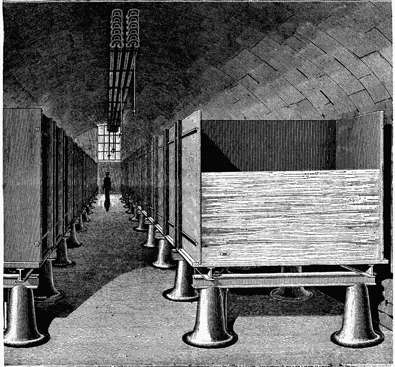Different colored lights were thrown on the performers as they rode around the ceiling, and at the end of the performance first one and then the other dropped into the safety net which had been placed about sixty feet below them. We are indebted to the Illustrirte Zeitung for the cut and article.