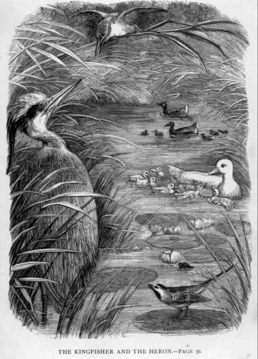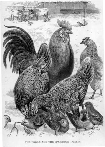 “Take that for your impudence, you self-satisfied little moss-weaver;” saying which the thrush gave the new-comer such a dig in the back with his hard bill, that the finch flew off in a hurry, vowing that he would pass no more opinions upon other people’s building.