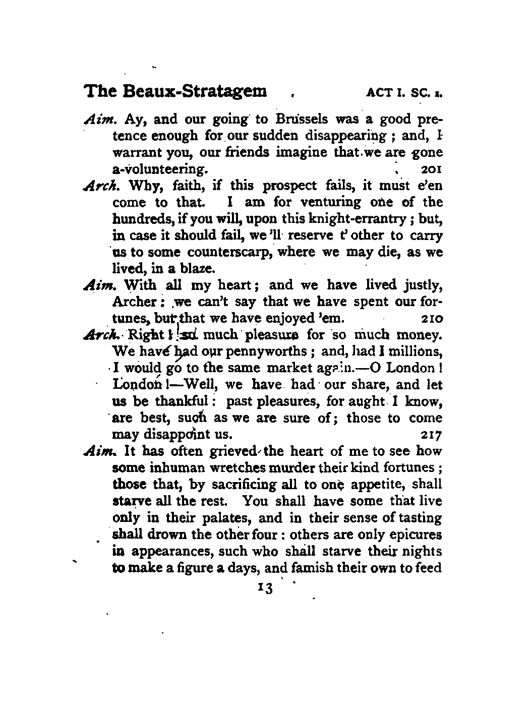 Arch. And that's enough. Men must not be poor; idleness is the root of all evil; the world's wide enough, let 'em bustle. Fortune has taken the weak [12]under her protection, but men of sense are left to their industry. [171]