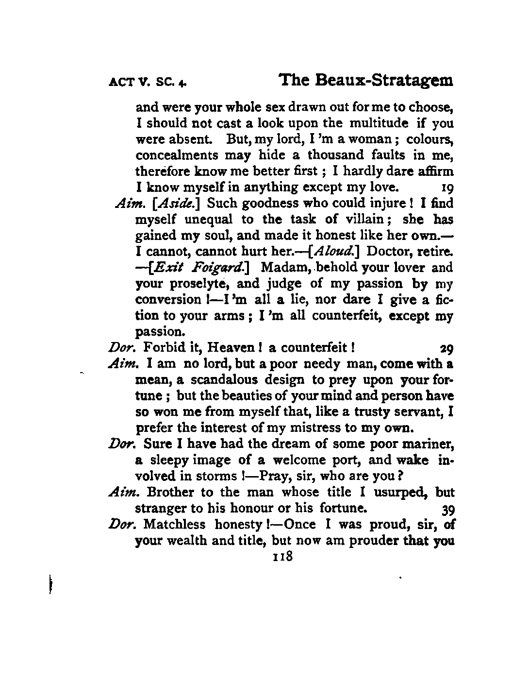 Aim. As to pur hearts, I grant ye, they are as willing tits as any within twenty degrees: but I can have no great opinion of our heads from the service they have done us hitherto, unless it be that they have brought us from London hither to Lichfield, made me a lord and you my servant.