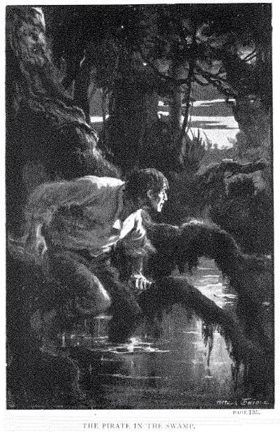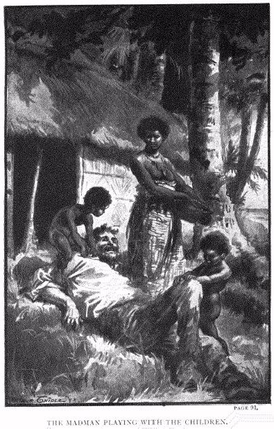 For some minutes the madman and the pirate sat gazing at each other in silent horror. Then the latter rose hastily and turned to leave the hold. As he did so, the madman sprang towards him, but he was checked by the chains which bound him, and fell heavily on the deck.