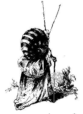The Grasshopper made a bound to get out of the way, but at that moment the lively young Cricket laid hold of his leg and held him fast. The consequence was that the Mole tumbled over him, fell on the top of the bloated Spider, and hit his head so violently on the breast of the Bull-frog that he stopped his noise immediately.