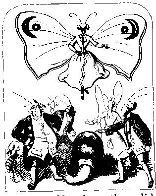 “My dear,” cried the Butterfly across the table to the Grasshopper, “I hope you are attending to your friends there. See that you give them enough to eat, and plenty of mountain-dew to drink.”