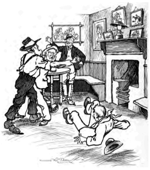 “There was a fine scene at Ted Reddish’s door. Ginger said that if there was a bit of a struggle it would be a good advertisement for Ted Reddish, and they might p’r’aps get more than a ’undered, and all the three of ’em could do, they couldn’t get the wild man out o’ that cab, and the cabman was hopping about ’arf crazy. Every now and then they’d get the wild man ’arf out, and then he’d get in agin and snarl. ’E didn’t seem to know when to leave off, and Ginger and the others got almost as sick of it as the cabman. It must ha’ taken two years’ wear out o’ that cab, but they got ’im out at last, and Reddish’s door being open to see what the row was about, they went straight in.