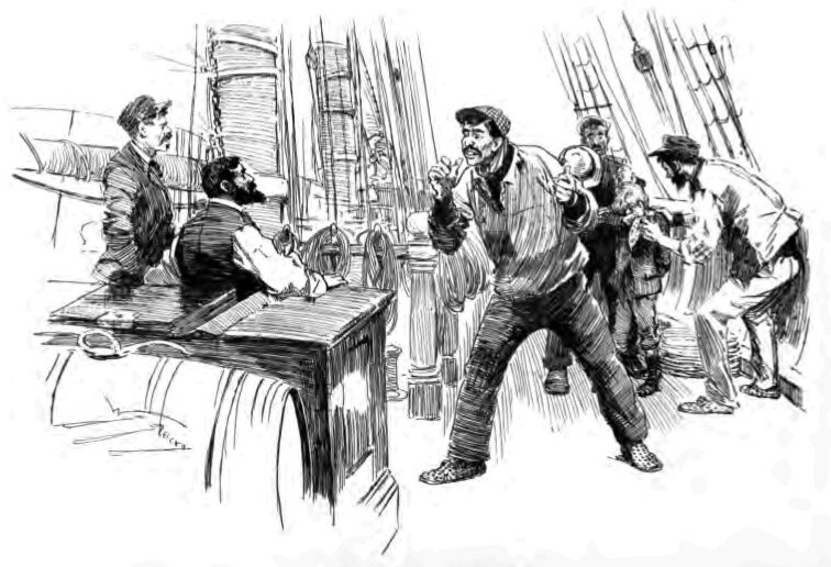 “The mate didn’t answer. He looked round helpless like, and see the third officer swopping glances with the second, and all the men looking sly and amused, and I think if ever a man saw ’e was done ’e did at that moment.