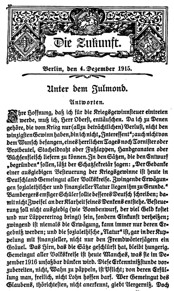 When I talked at length one day with President Wilson on my visit to America in October, 1916, he remarked, half to himself, in surprise at my tale of war, "Why does all this horror come on the world? What causes it?" "Mr. President," I answered, "it is the king business."