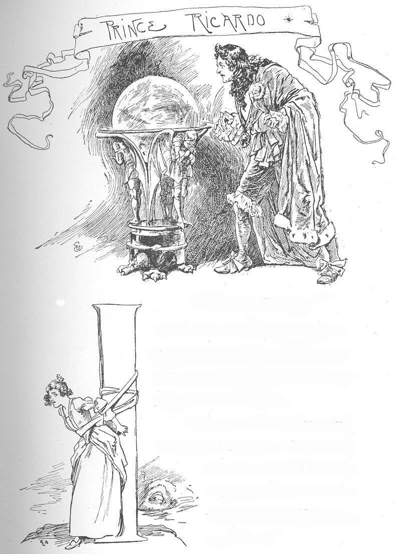 “Yes, she’s a dear, good girl,” said the king; “yet she looks melancholy. I believe, myself, that if Ricardo asked her to marry him, she would not say ‘No.’ But that’s just one of the things I object to most in Dick. Round the world he goes, rescuing ladies from every kind of horror—from dragons, giants, cannibals, magicians; and then, when a girl naturally expects to be married to him, as is usual, off he rides! He has no more heart than a flounder. Why, at his age I—”