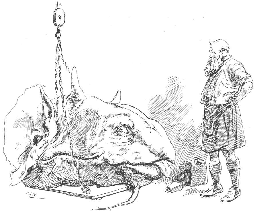 “Hi, Ross!” he shouted, “just weigh this beast’s head. I’ve had a splendid day with a sea-monster. Get the head stuffed, will you? We’ll have it set up in the billiard-room.”