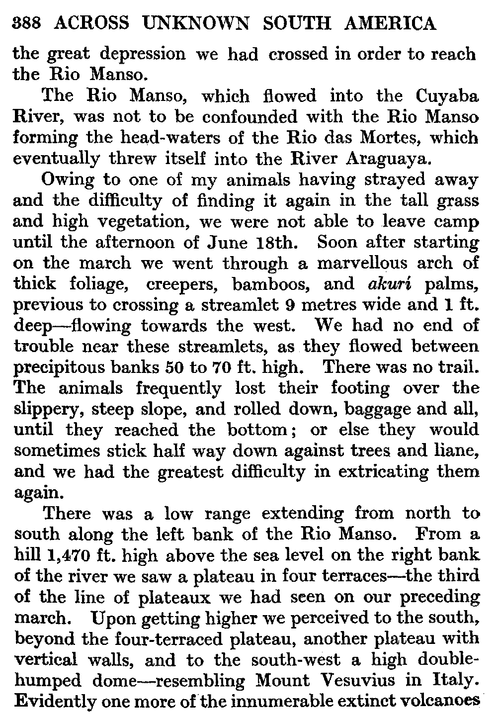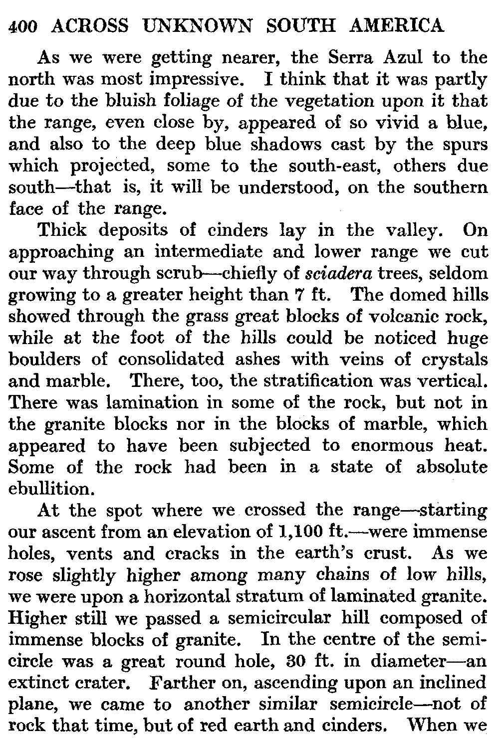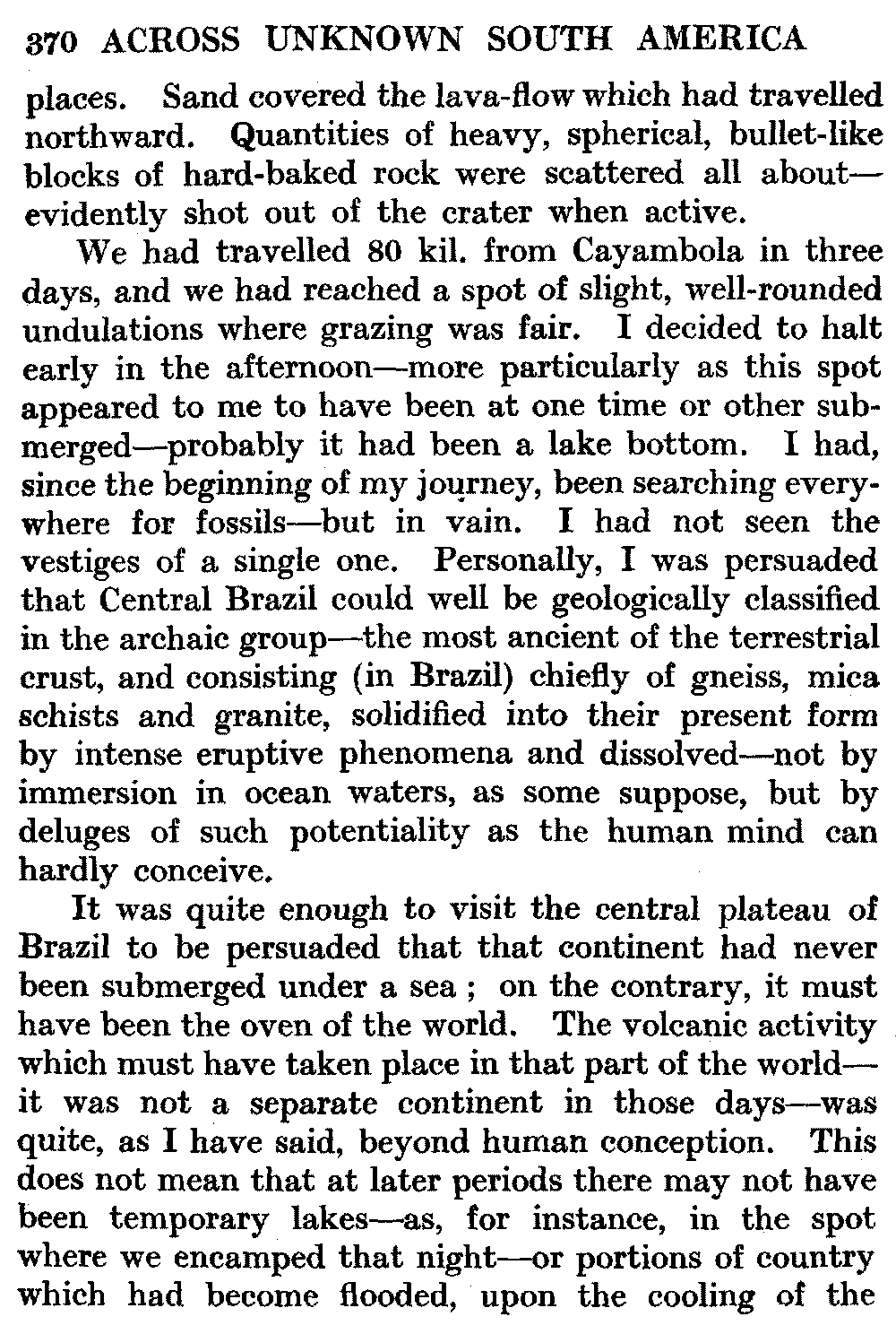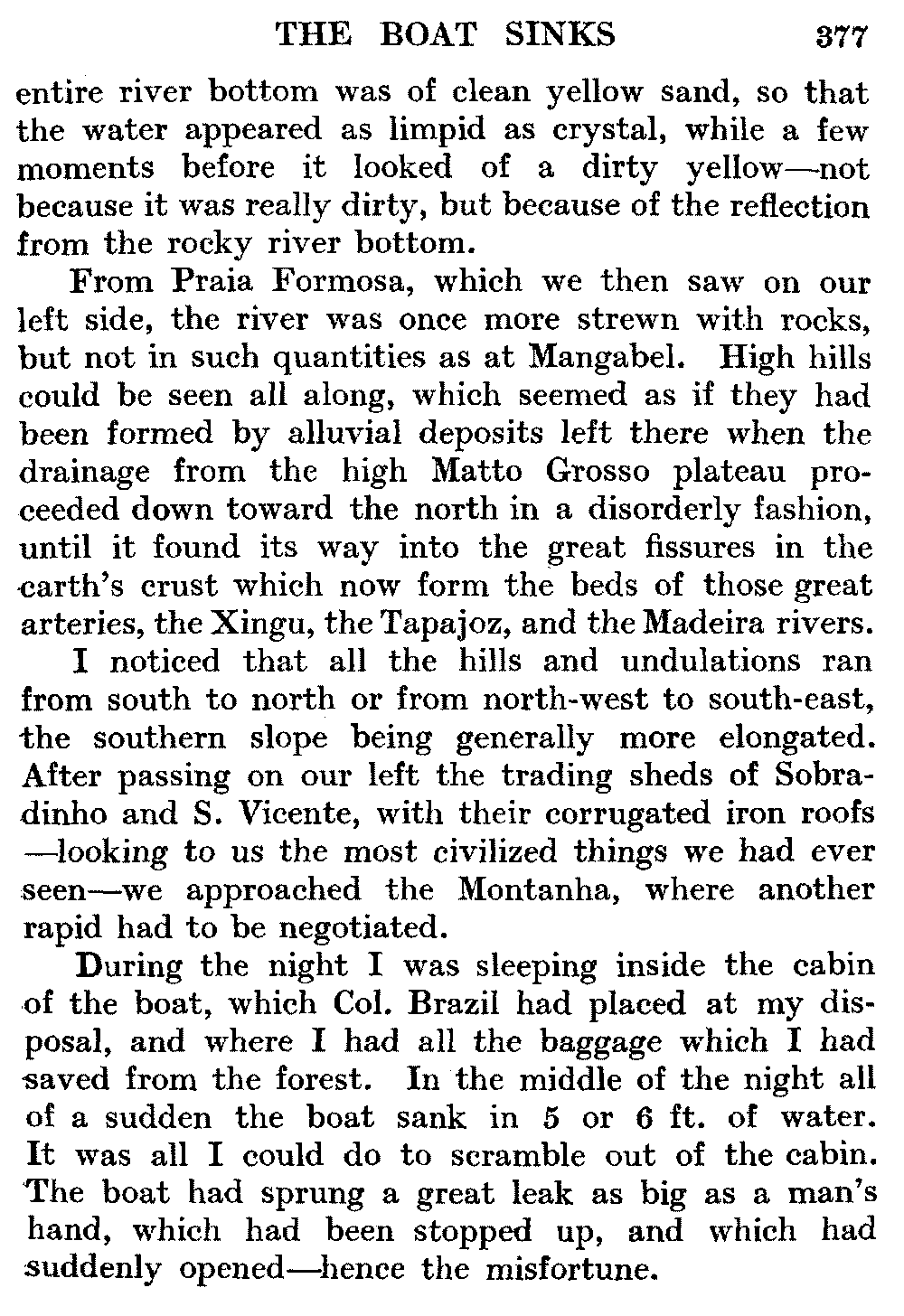 | XXIII | The Jangada River—Demented Descendants of Slaves—Appalling Degeneration—Giant Monoliths—The River Roncador—Gigantic Natural Gateways—The Discovery of Fossils | 359-376 |