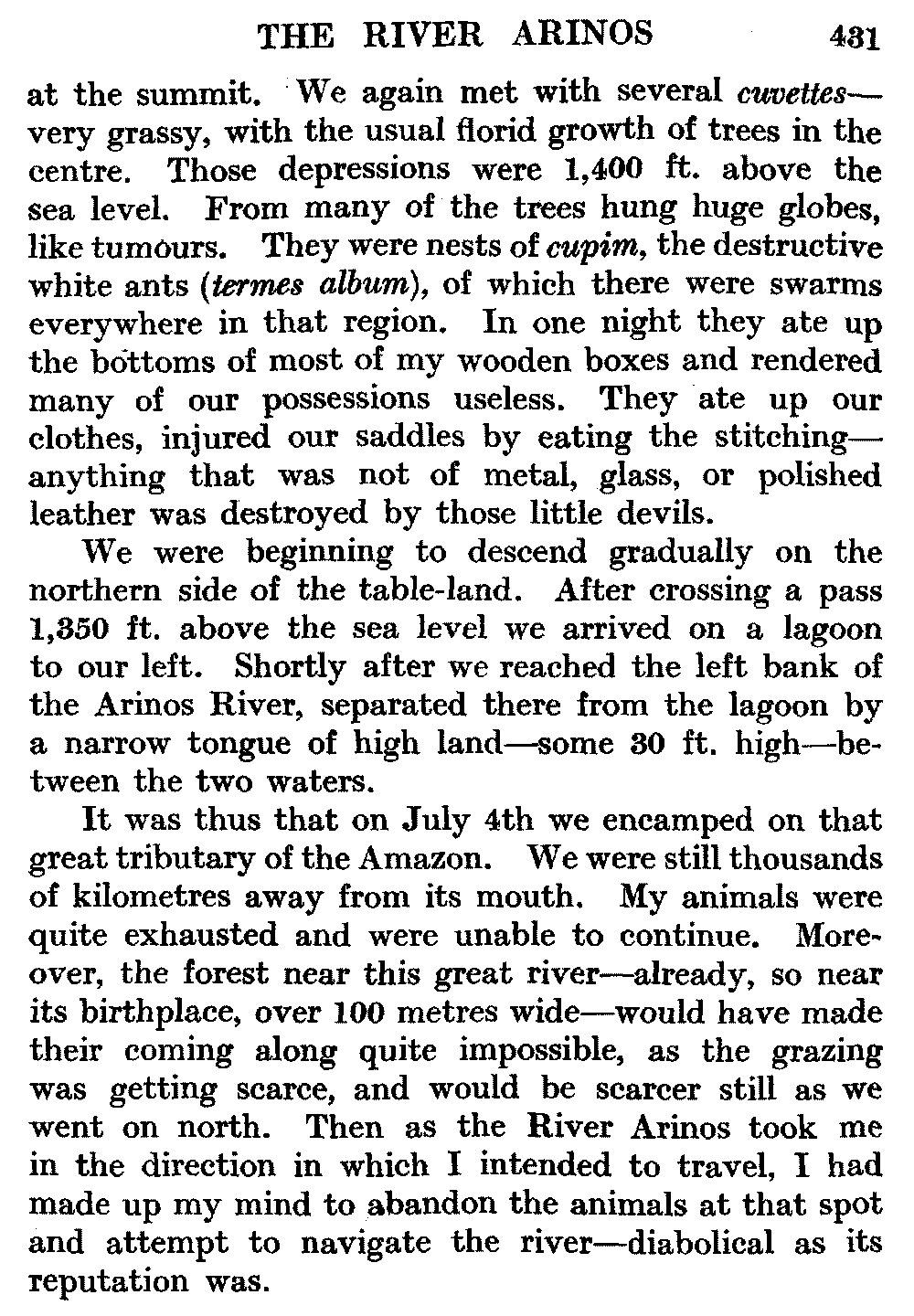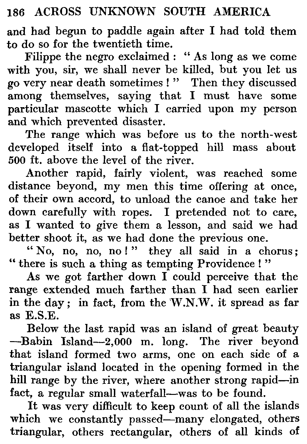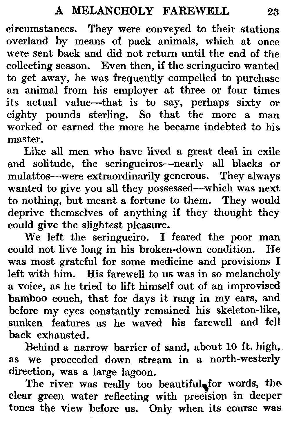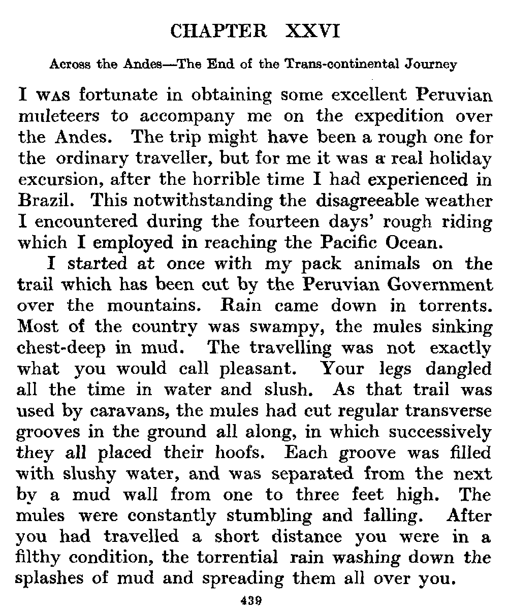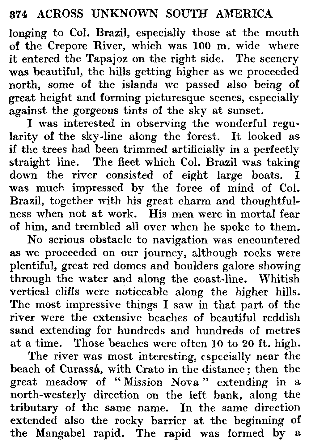 | XXIII | The Jangada River—Demented Descendants of Slaves—Appalling Degeneration—Giant Monoliths—The River Roncador—Gigantic Natural Gateways—The Discovery of Fossils | 359-376 |