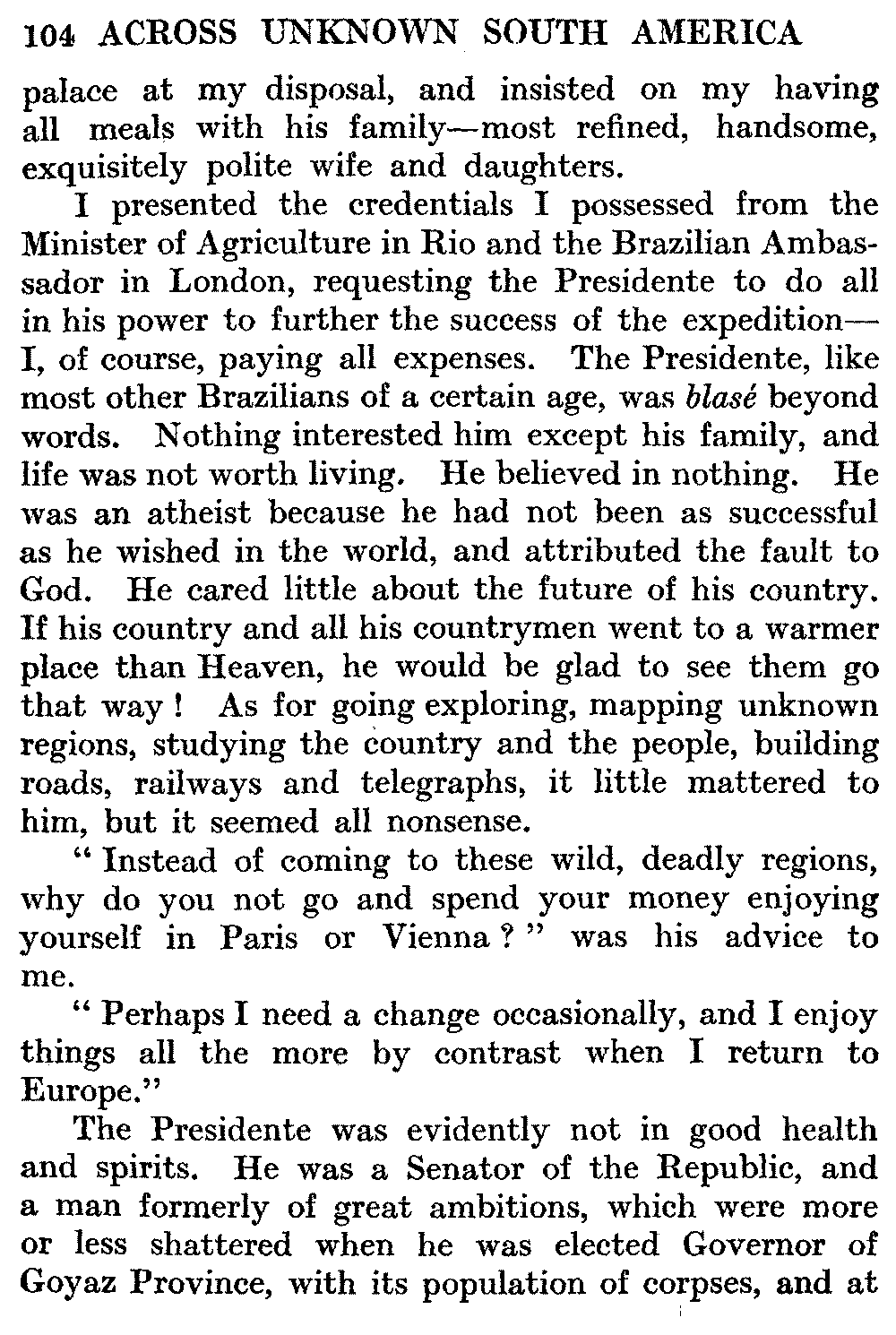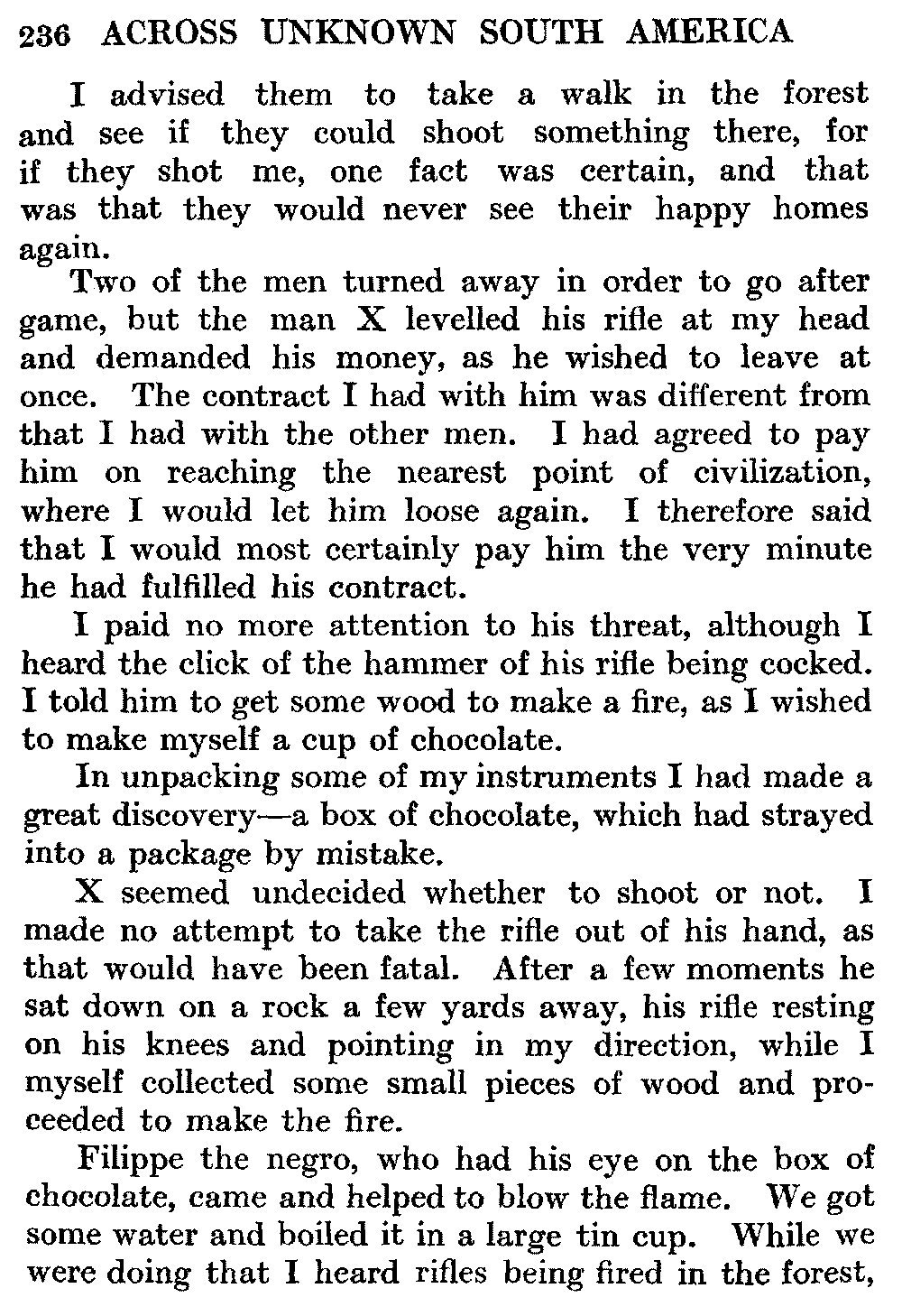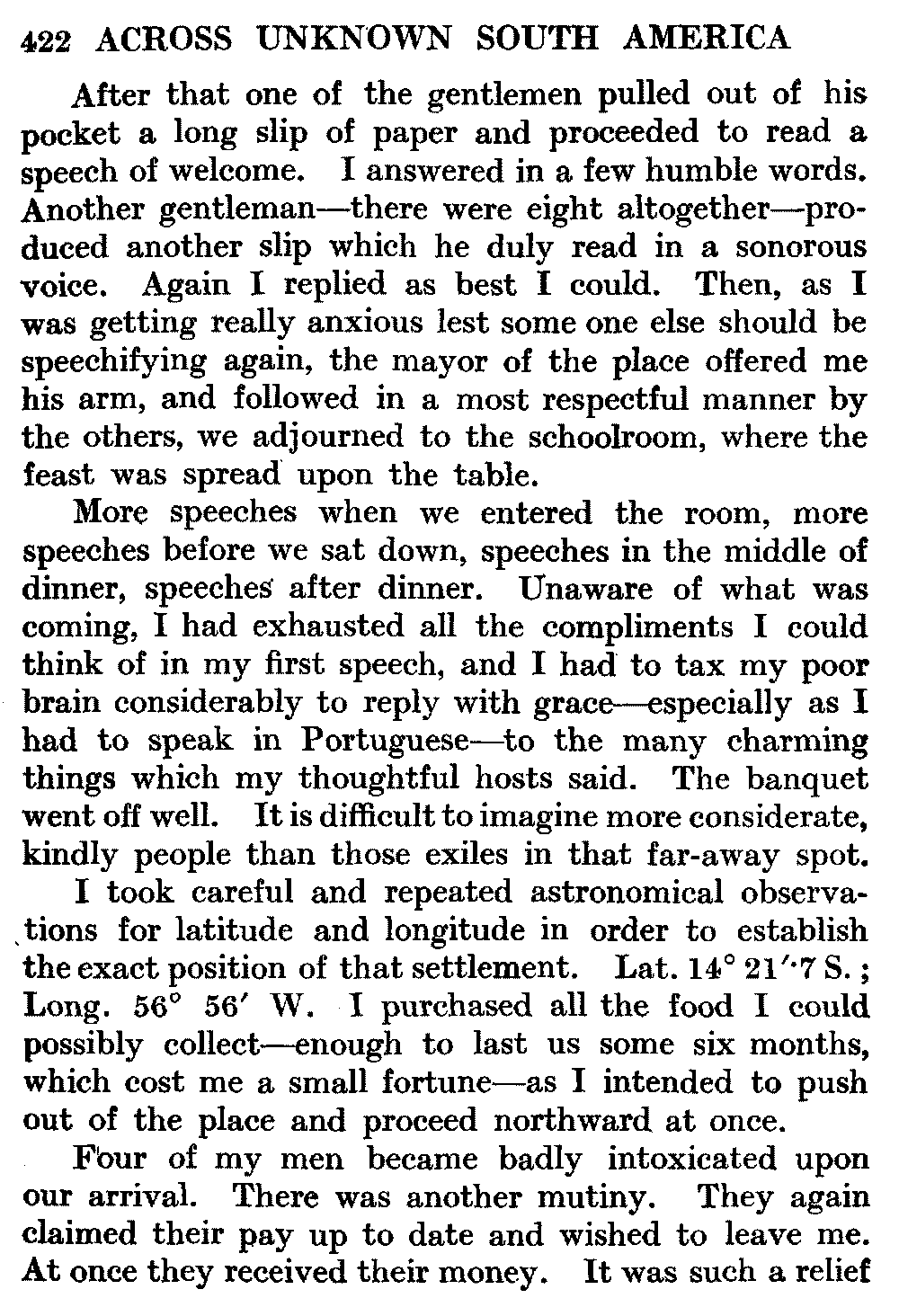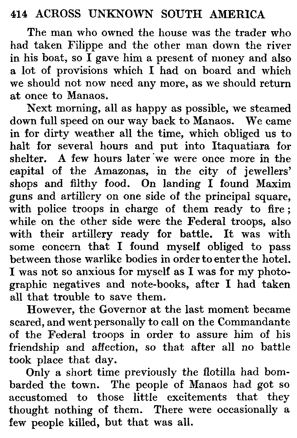 | XXIII | The Jangada River—Demented Descendants of Slaves—Appalling Degeneration—Giant Monoliths—The River Roncador—Gigantic Natural Gateways—The Discovery of Fossils | 359-376 |