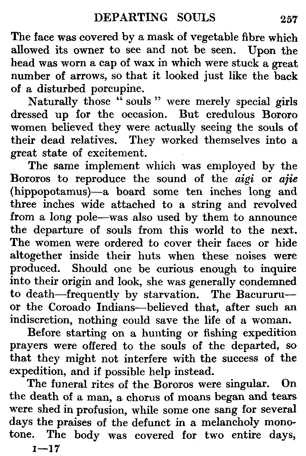 | XVI | Bororo Legends—The Religion of the Bororos—Funeral Rites | 242-263 |
