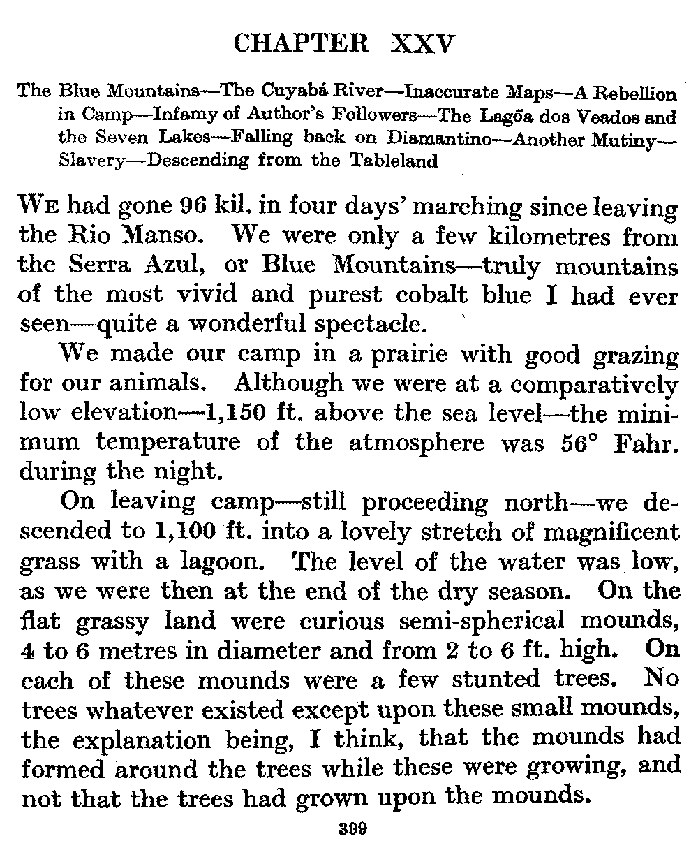 | XXV | The Blue Mountains—The Cuyabá River—Inaccurate Maps—A Rebellion in Camp—Infamy of Author's Followers—The Lagõa dos Veados and the Seven Lakes—Falling Back on Diamantino—Another Mutiny—Slavery—Descending from the Tableland | 399-432 |