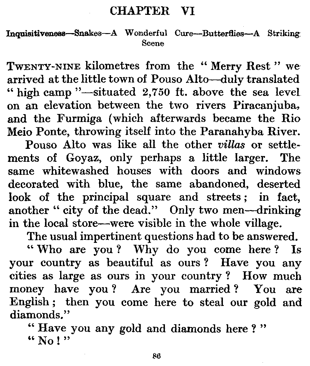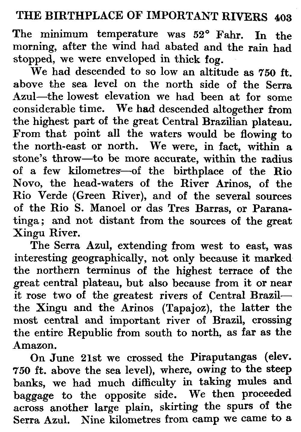 | XIX | The Paredão Grande—A Cañon—A Weird Phenomenon—Troublesome Insects | 292-310 |