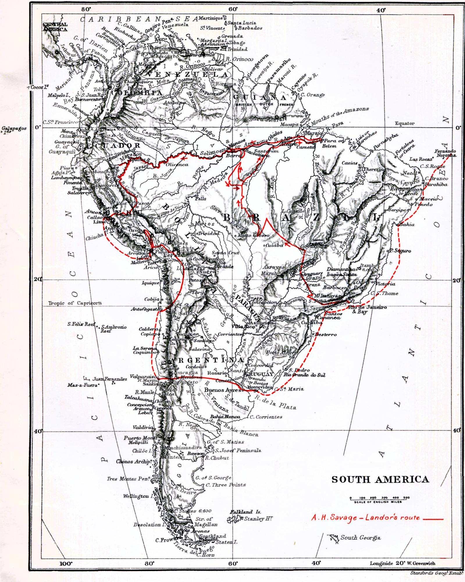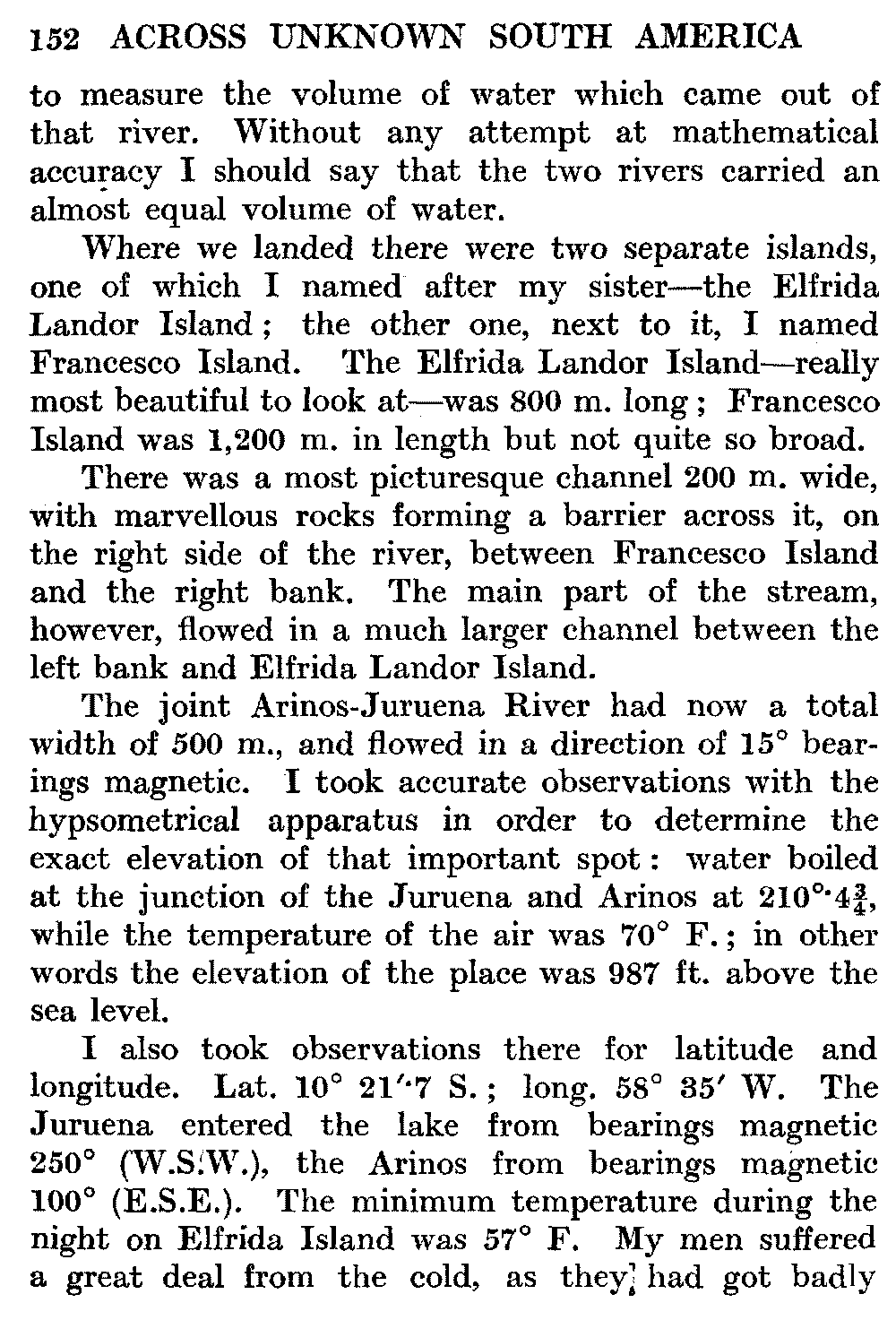 The Project Gutenberg EBook of Across Unknown South America, by Arnold Henry Savage Landor This eBook is for the use of anyone anywhere at no cost and with almost no restrictions whatsoever. You may copy it, give it away or re-use it under the terms of the Project Gutenberg License included with this eBook or online at www.gutenberg.org Title: Across Unknown South America Author: Arnold Henry Savage Landor Release Date: August 31, 2007 [EBook #22483] Language: English Character set encoding: UTF-8 *** START OF THIS PROJECT GUTENBERG EBOOK ACROSS UNKNOWN SOUTH AMERICA *** Produced by Michael Ciesielski and the Online Distributed Proofreading Team at https://www.pgdp.net