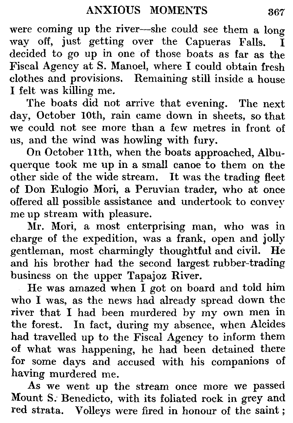 | XXIV | A Swampy Valley—Impressive Scenery—"Church Rock"—Escaping before a Forest Fire—The Rio Manso—Difficulties of marching across Virgin Country—Beautiful Rapids | 377-398 |