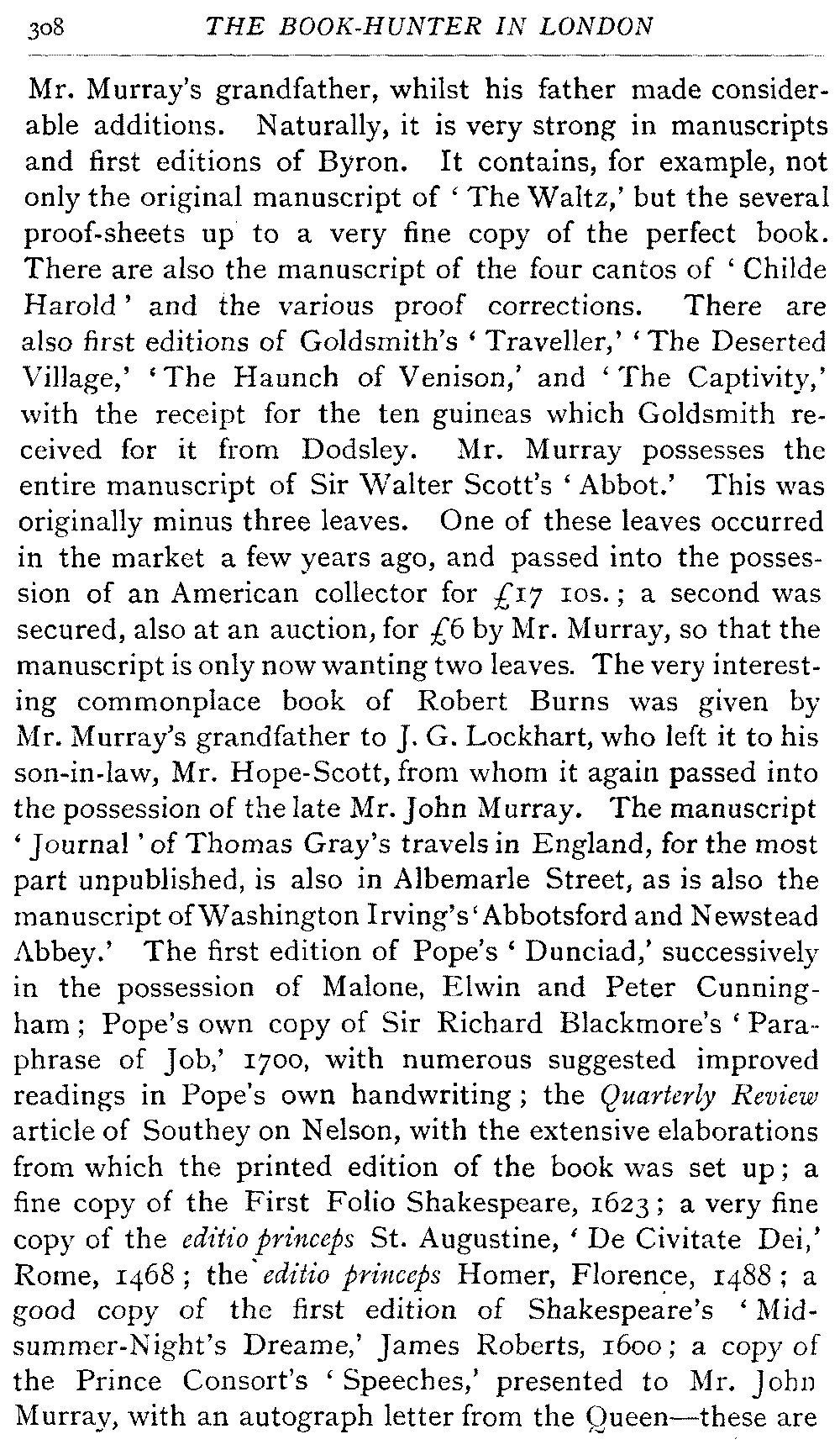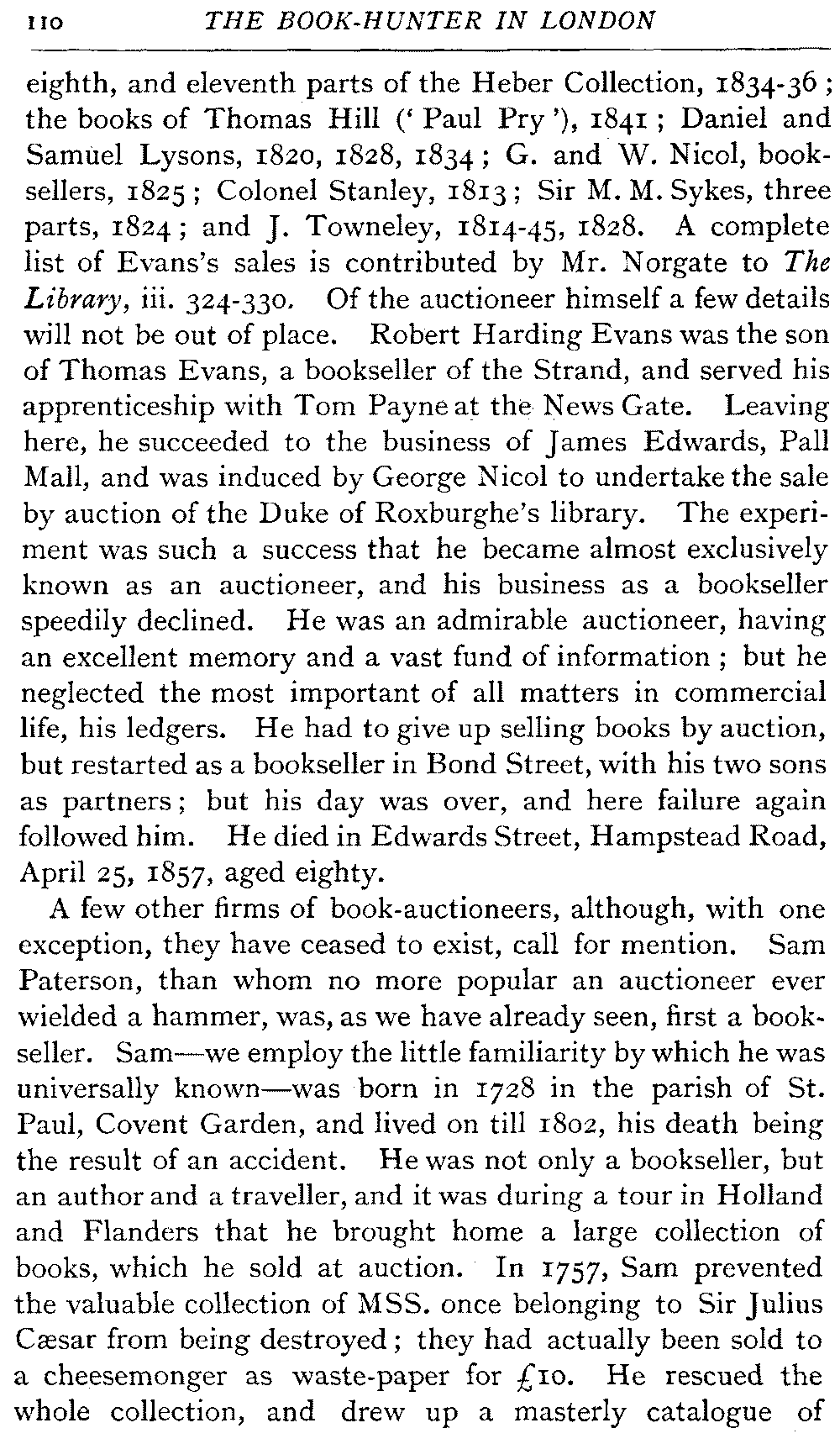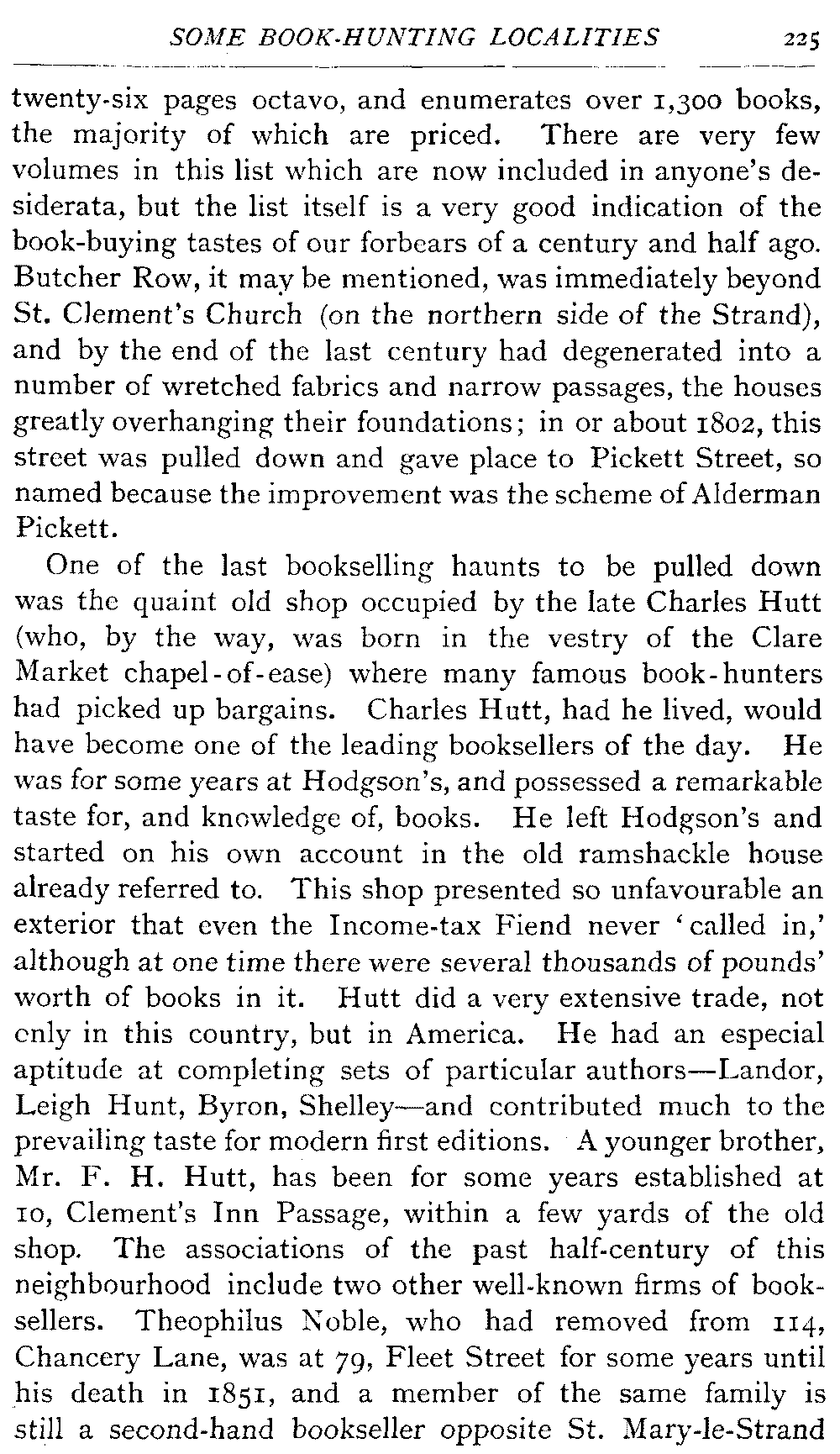 'The Book-hunter in London' is the outcome not only of material which has been accumulating for many years past, from published and unpublished sources, but also of a long and pleasant intercourse with the leading book-collectors and booksellers in London, not to mention a vigorous and constant prosecution of one of the most pleasant and instructive of hobbies. The author has freely availed himself of the information in the works of Dibdin, Nichols, and other writers on the subject, but their statements have been verified whenever possible, and acknowledgements have been made in the proper places to the authorities laid under contribution.