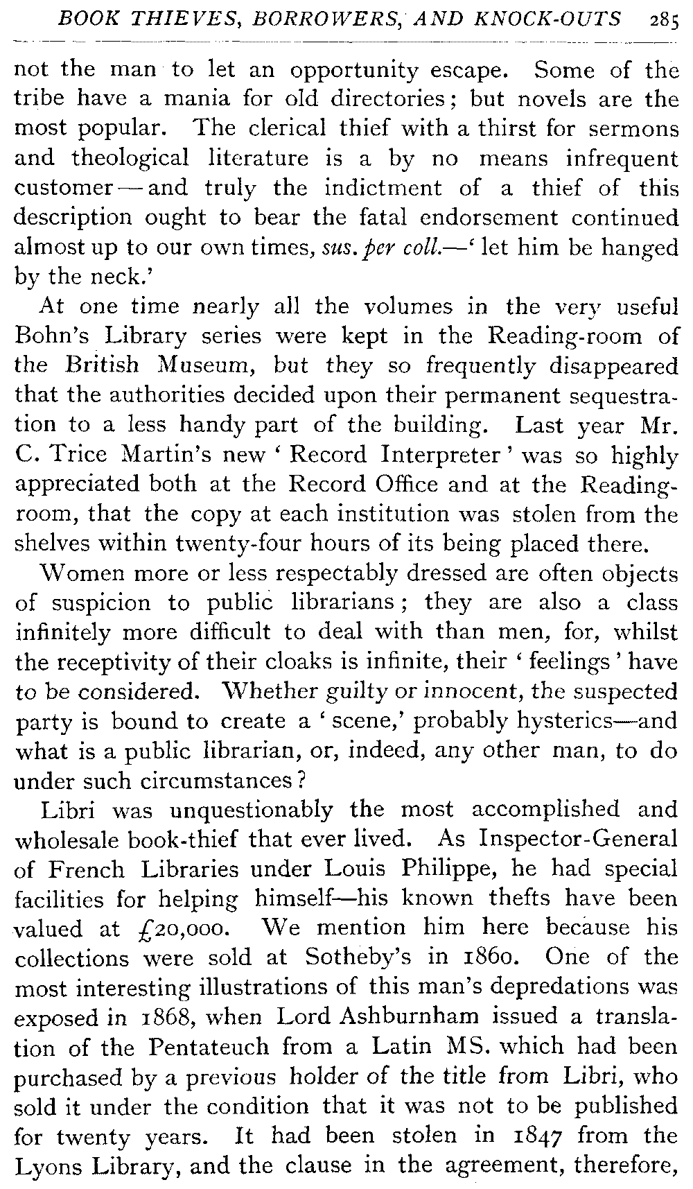 | BOOK THIEVES, BORROWERS, AND KNOCK-OUTS | 274 |