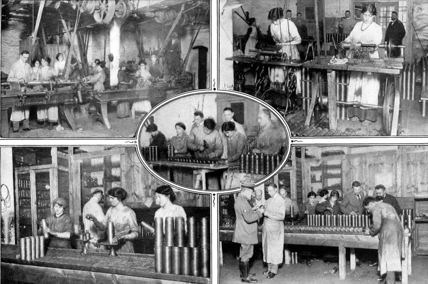 | Das Drehen der Granaten. Forming the shells. |