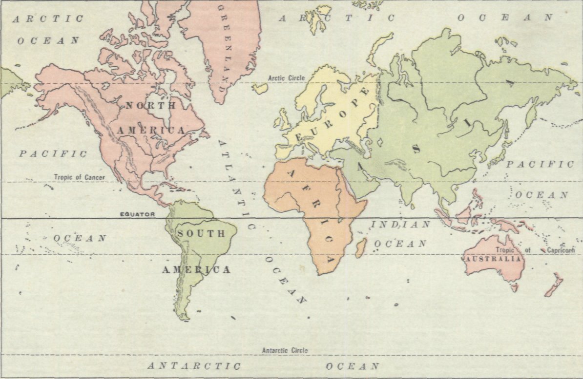 As geography is a study of cause and effect, the early lessons should be mainly oral. Later, in order to obtain a broad knowledge of geographical data, not one but many books should be read. This little book aims to serve as a bridge between the oral lesson and the descriptive text-book. The presentation of many questions leads the pupil to think out cause and effect, and to connect his present knowledge with the realm of the unknown. Special care has been exercised to present facts only when facts are [p8] absolutely necessary, and only after allowing the pupil the opportunity to first exercise his own reasoning faculties in obtaining the information.