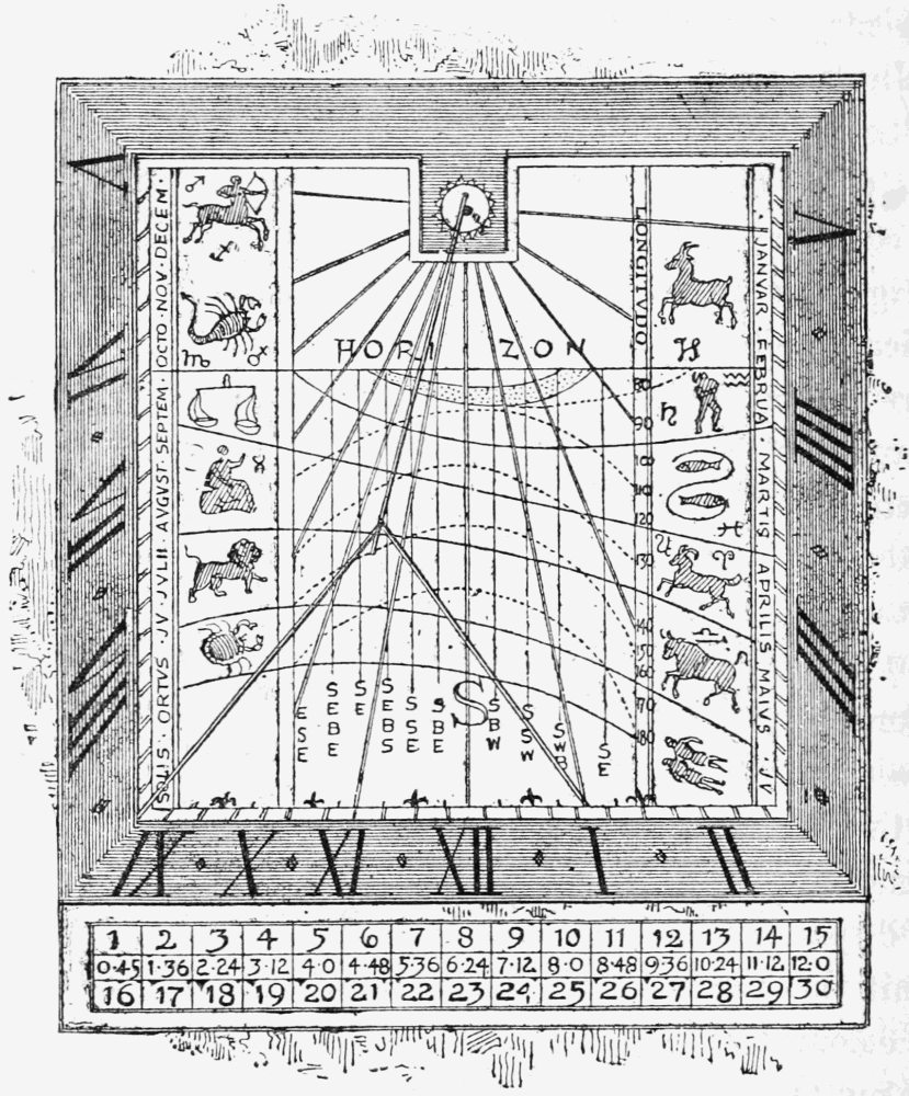 One of the most remarkable instruments that has ever been employed in studying the heavens was the mural quadrant which Tycho erected in one of the apartments of Uraniborg. By its means the altitudes of the celestial bodies could be observed with much greater accuracy than had been previously attainable. This wonderful contrivance is represented on the preceding page. It will be observed that the walls of the room are adorned by pictures with a lavishness of decoration not usually to be found in scientific establishments.
