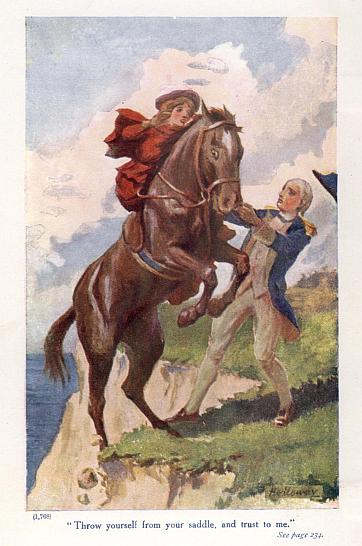 Hitherto Lady Sophy and her friends at the castle, had not paid their promised visit to the fisherman’s cottage. At length, however, one evening just as Dermot and his mother had landed, they heard voices on the downs above their hut, and looking up Dermot espied the party from the castle. They were standing irresolute what path to take. He instantly climbed up the cliff by a pathway which speedily placed him by their side. He begged them to dismount, and undertook to conduct Lady Sophy and the little girl, whom he heard addressed as Lady Nora, down to the hut.