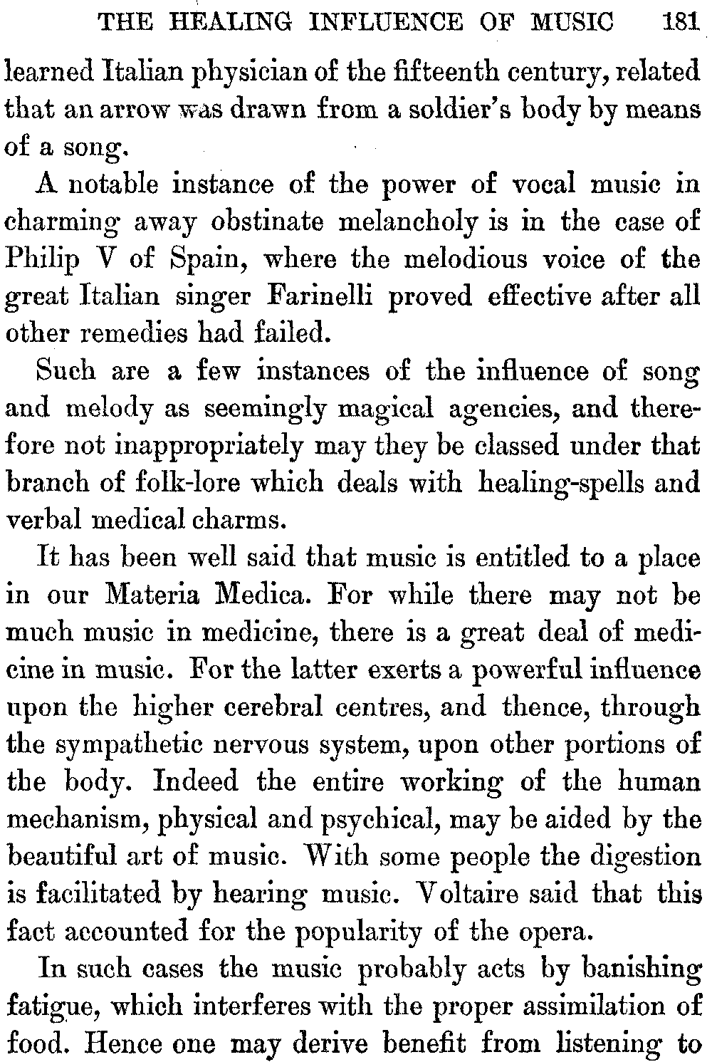 | XVII. | The Healing Influence of Music (continued) | 185 |