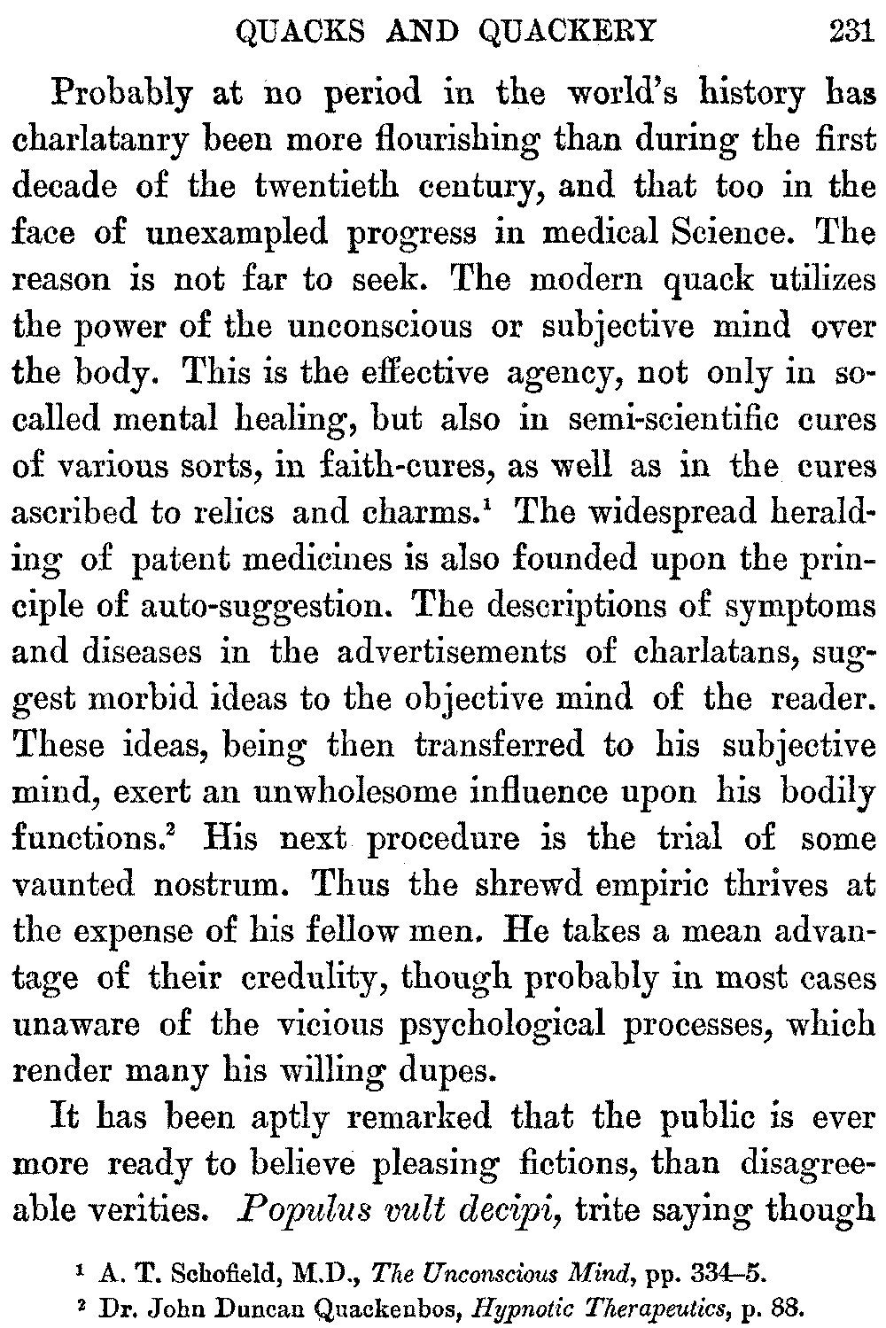 It is also doubtless true that much good may result from the employment of suggestion by a charlatan, in the form of a written medical charm, both parties being alike profoundly ignorant of the healing influence involved.