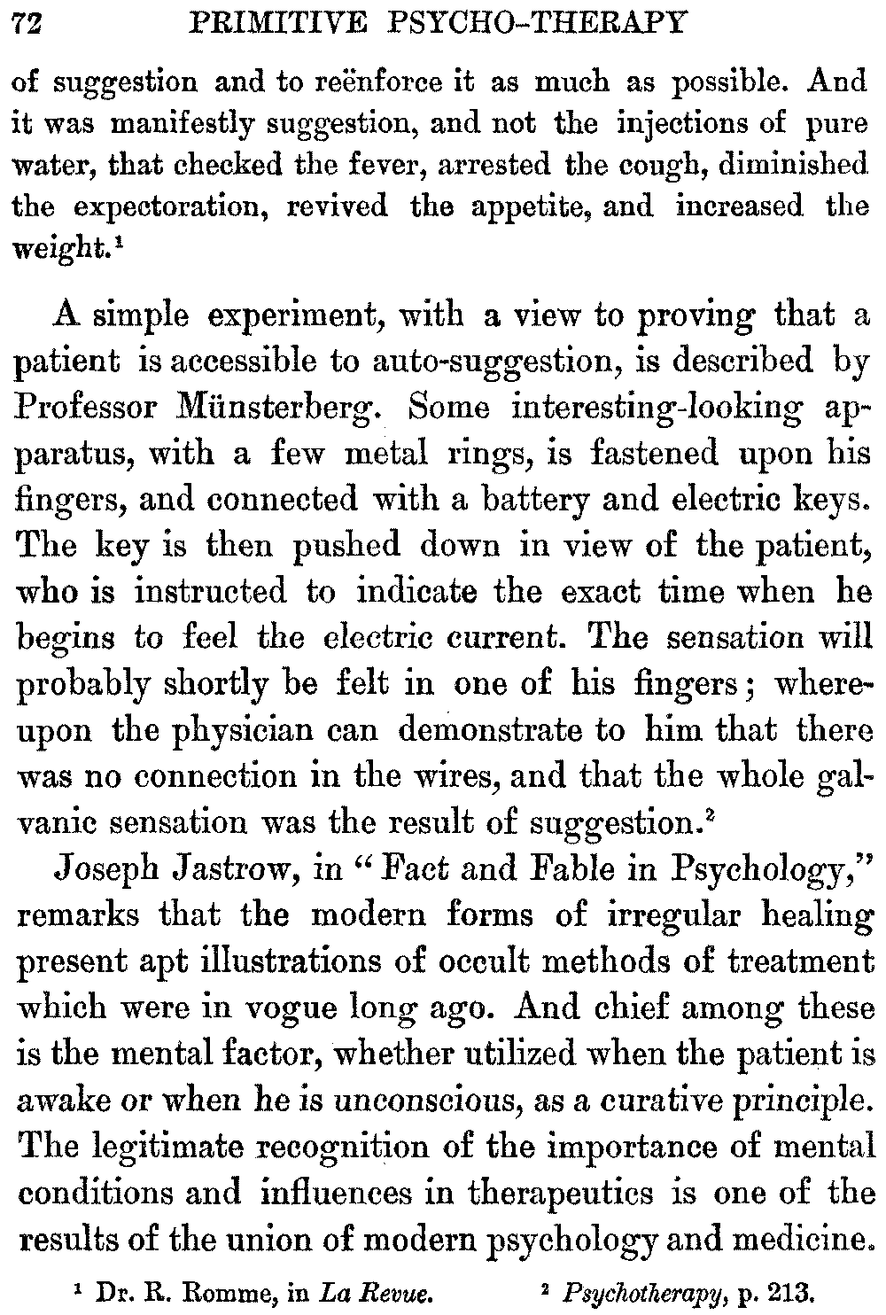 Professor Hugo Münsterberg has said that the less a patient knows about the nature of suggestion, the more benefit he is likely to experience therefrom; but that, [17]on the contrary, a physician may obtain the better results, the more clearly he understands the working of this therapeutic agent.