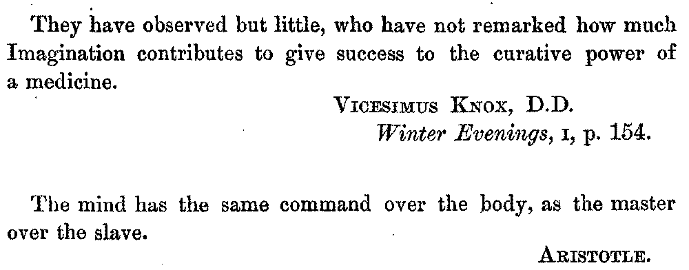 They have observed but little, who have not remarked how much Imagination contributes to give success to the curative power of a medicine.
