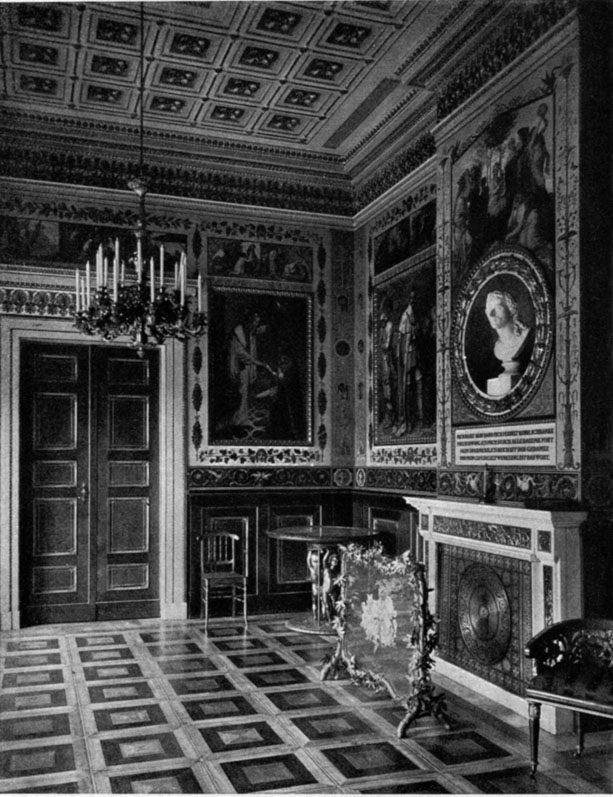 [18]Hall in Benrath Castle near Düsseldorf / Built by Nikolaus de Pigage for Elector Karl Theodor of the Palatinate / The interior represents a graceful link between the Rococo and the Classic / From a photograph by the National Messbildanstalt, Berlin