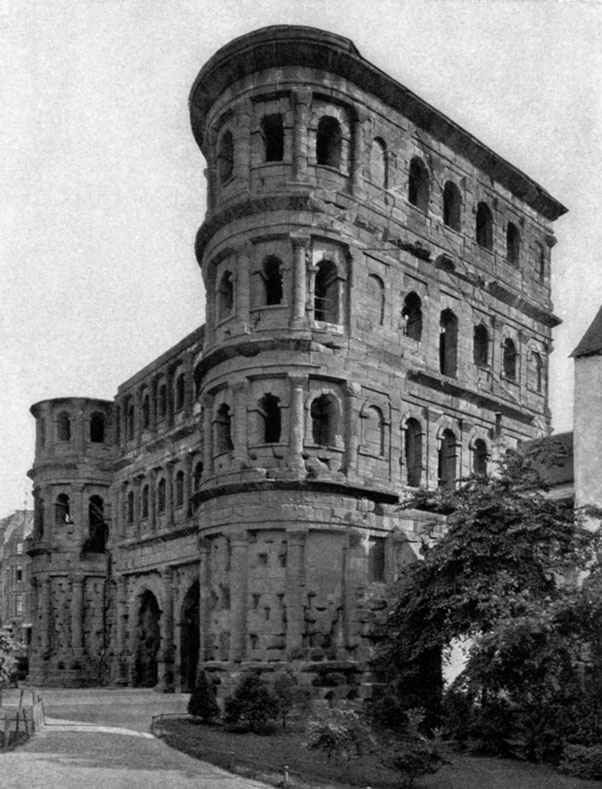 [8]A monument from the time of the Roman Emperors in Germany / The “Porta nigra” at Treves (Trier) on the Moselle, a Roman gateway dating from the 4th century / Photograph by the National Messbildanstalt, Berlin