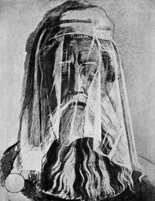 [94]The Karl frescoes in the Town-hall at Aix-la-Chapelle (Aachen) / Painted by Alfred Rethel in 1840–1862 / Head of the dead Emperor from the fresco “Visit of Otto III to the Grave of Karl the Great” / Sketch in the cabinet of Engravings at Dresden
