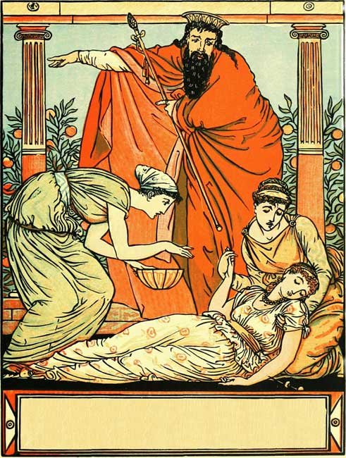 Alas! the spindle pricked her hand—the charm had entered in!
