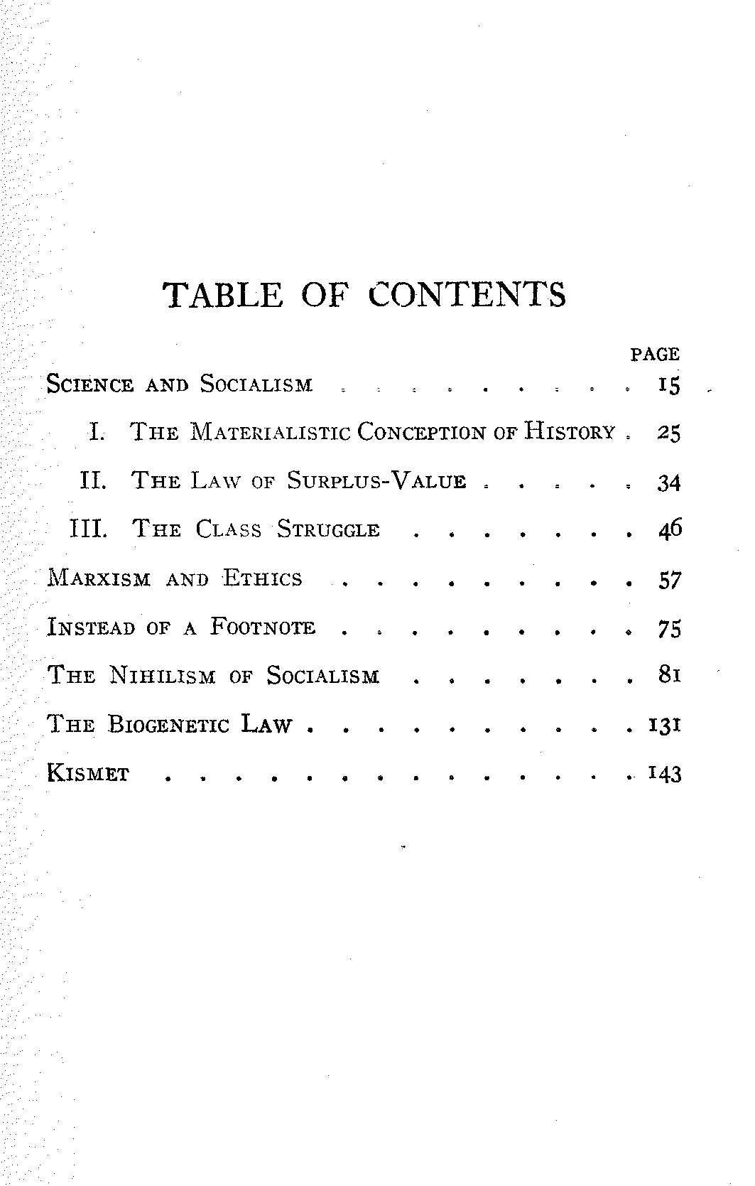 Of the papers in this little volume two have appeared in print before: "Science and Socialism" in the International Socialist Review for September, 1900, and "Marxism and Ethics" in Wilshire's Magazine for November, 1905. My thanks are due to the publishers of those periodicals for their kind permission to re-print those articles here. The other papers appear here for the first time.