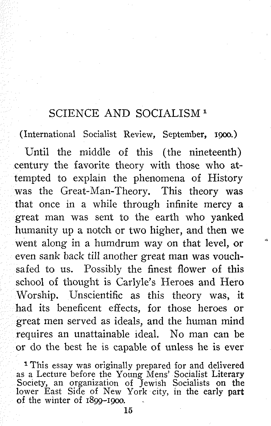 [1] This essay was originally prepared for and delivered as a Lecture before the Young Mens' Socialist Literary Society, an organization of Jewish Socialists on the lower East Side of New York city, in the early part of the winter of 1899-1900.